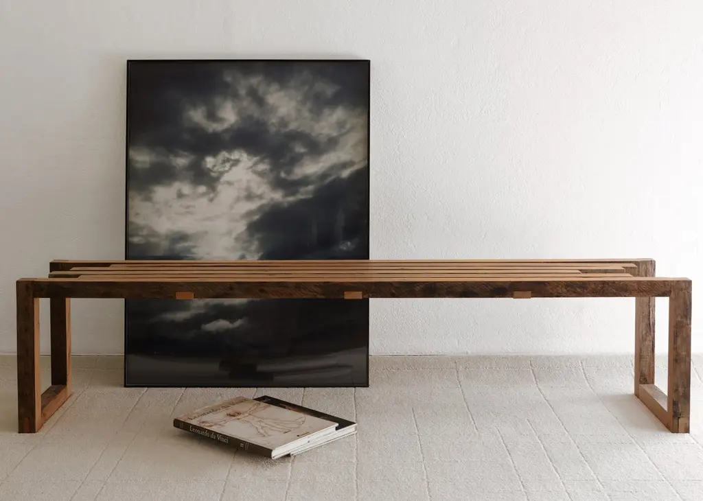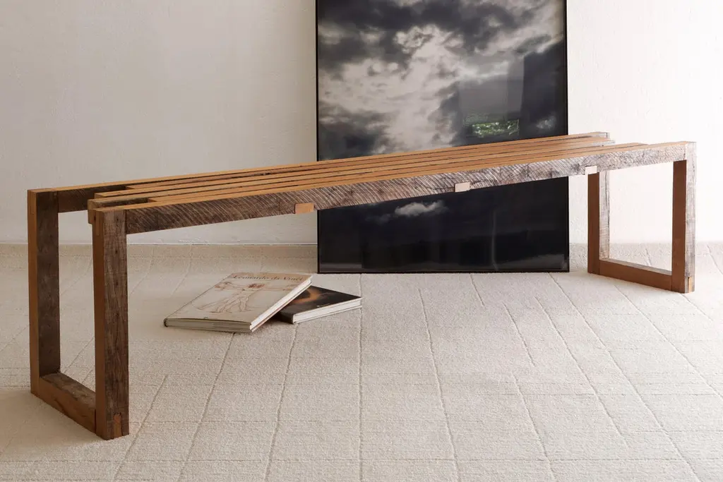 Contemporary Bench By Leo Strauss, Reclaimed Tropical Wood