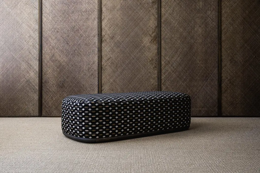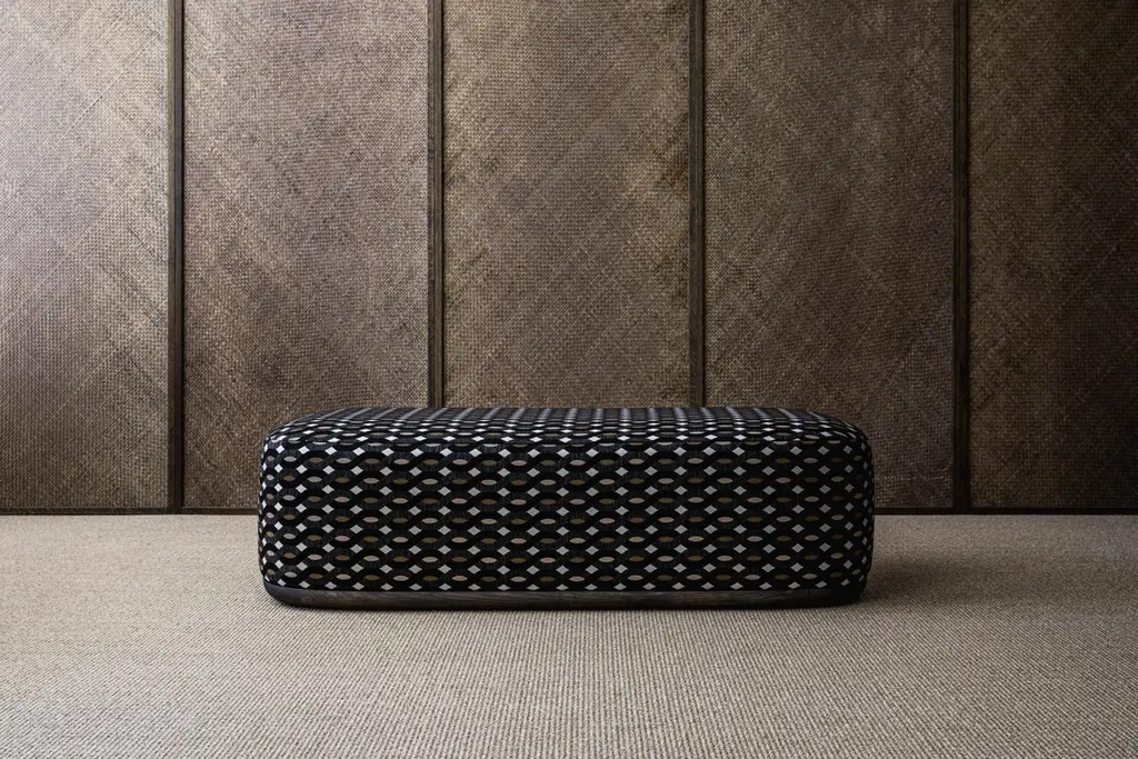 Unio bench by Poiat Designers: Timo Mikkonen & Antti Rouhunkoski Collection UNIO 2023Dimensions: H. 40 x W. 150 D. 72 cm SH. 40 Model shown: Fabric Fox 02 by LarsenThe Unio Collection, featuring an armchair, ottomans, sofas, marks a new chapter for Poiat. The collection explores novel forms and textures by blending aesthetic elements from past decades with contemporary functionality and comfort. The different characteristics of the Unio furniture family are expressed through its shape and materials. The secure and upright look invites one to sit with confidence, while the tactile nature of textiles and rounded shapes suggest its sophisticated comfort.The renowned lifestyle magazine Monocle chose the Unio Collection as the winner of the Warmest Design prize at the Monocle Design Awards 2022, the Unio Armchair combines influences from the past and present – focusing on soft forms and textures.