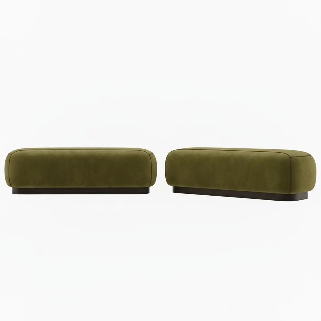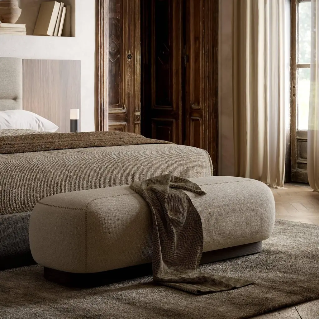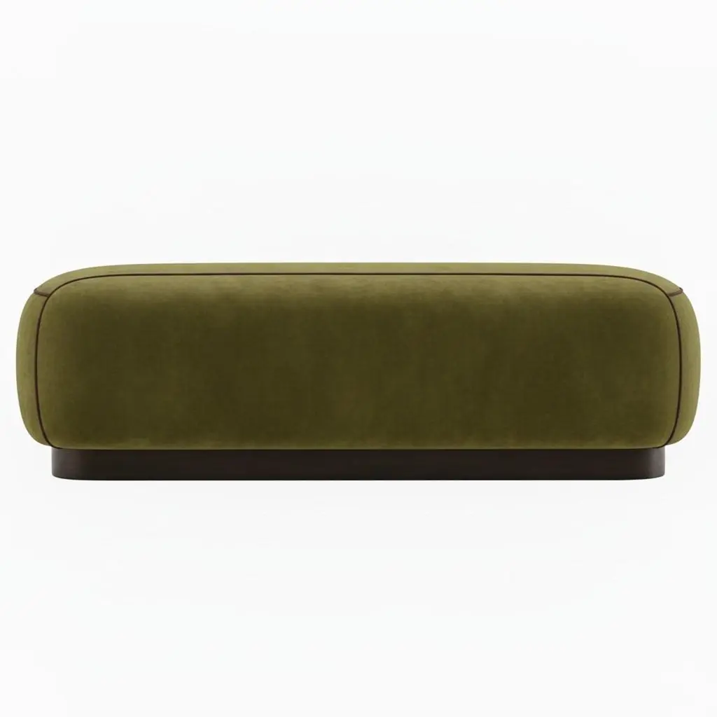 This bench elevates any interior with its sculptural presence. Defined by a rounded, oversized silhouette and meticulous stitching, this piece strikes a perfect balance between bold design and gentle elegance. It is available with a solid wood base and an upholstered seat.Contact us to enquire about COM/COL production, requirements and material shipping instructions.Please contact us if you have any questions about customization and pricing. We will be glad to check with the factory’s technical team if sizes, finishes, and colors can be customized. We do our best to expedite production and to ship and deliver product within the listed lead time, however current lead times might be longer due to global shipping backlog and delays. These delays are out of our control and cannot be a reason to cancel an order.Our pricing includes all costs for international shipping to the U.S., as well as duties and customs clearance fees. Please be aware that local delivery within the U.S. is not included. We offer white glove, front door, and warehouse delivery options. For shipments outside the U.S., kindly reach out to us for a detailed quote.
