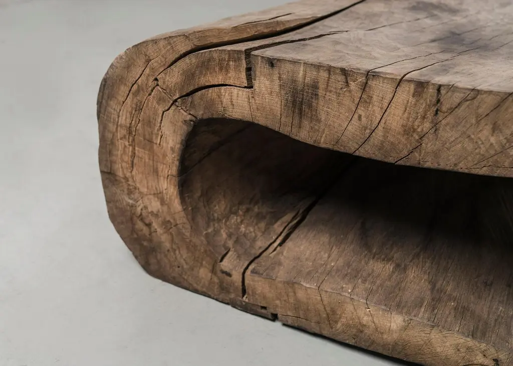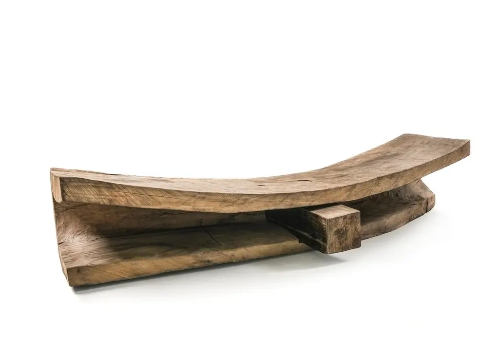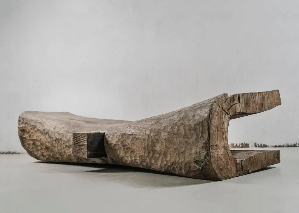 Massive bench made of solid oak (+ linseed oil)(Outdoor use OK)Measures: 300 x 70 x 35 cmSÓHA design studio conceives and produces furniture design and decorative objects in solid oak in an authentic style. Inspiration to create all these items comes from the Russian North aesthetics with its severe nature, log huts black from time and climate and scant patterns. Wood is masterfully hand processed with chainsaw or chisel, whereby producing beautiful surface patterns. The wood is soaked in boiling baths of linseed oil, creating this special patina and making each creation a very unique piece. Reacting with tanning substances under high temperature, oil gives the objects expressive and natural colours, from light brown to charcoal-black. SÓHA offers a vast array of neo-primitivist interior objects. Our kitchen utensil, wall panels, sculptures and furniture solutions are executed in one unique style and will organically fit into the interior of your home. Each piece is one-of-a-kind handmade product.Unique piece made to order.