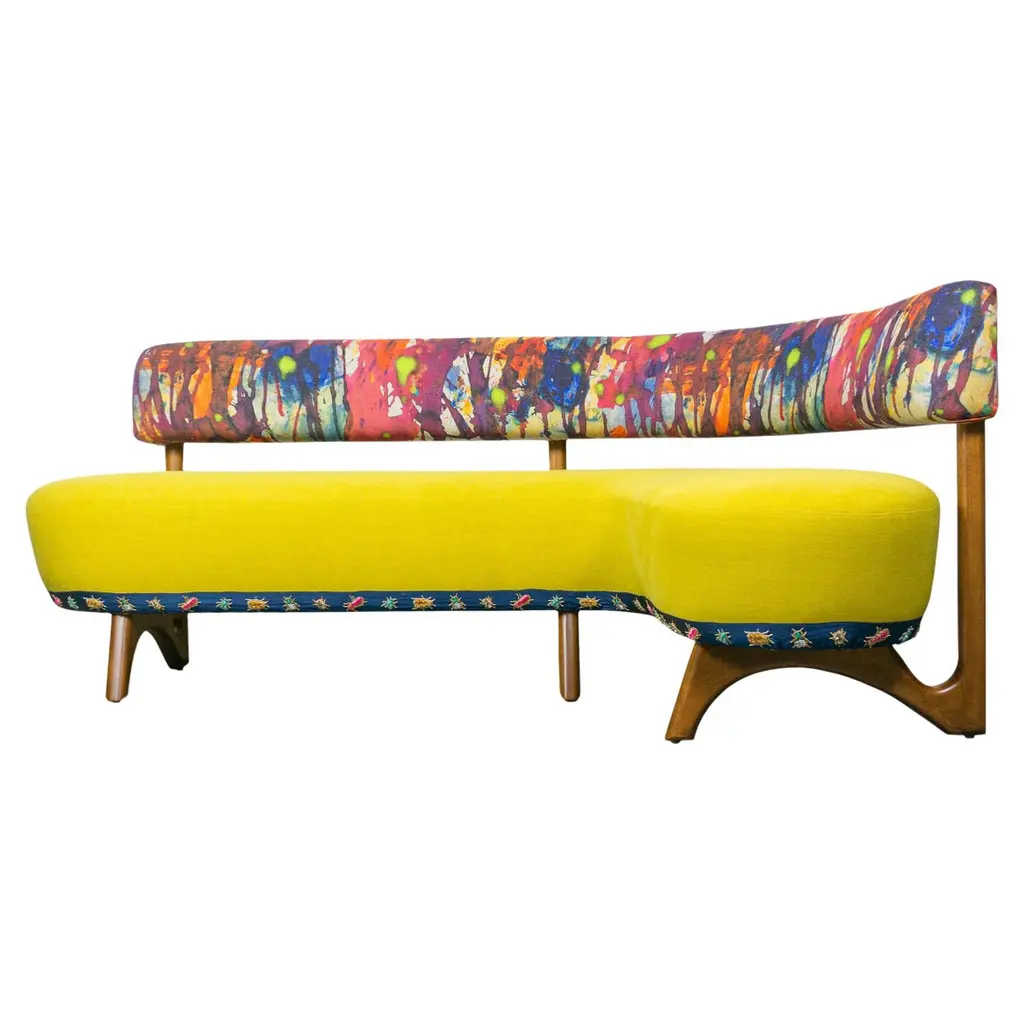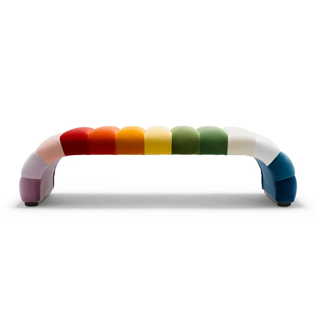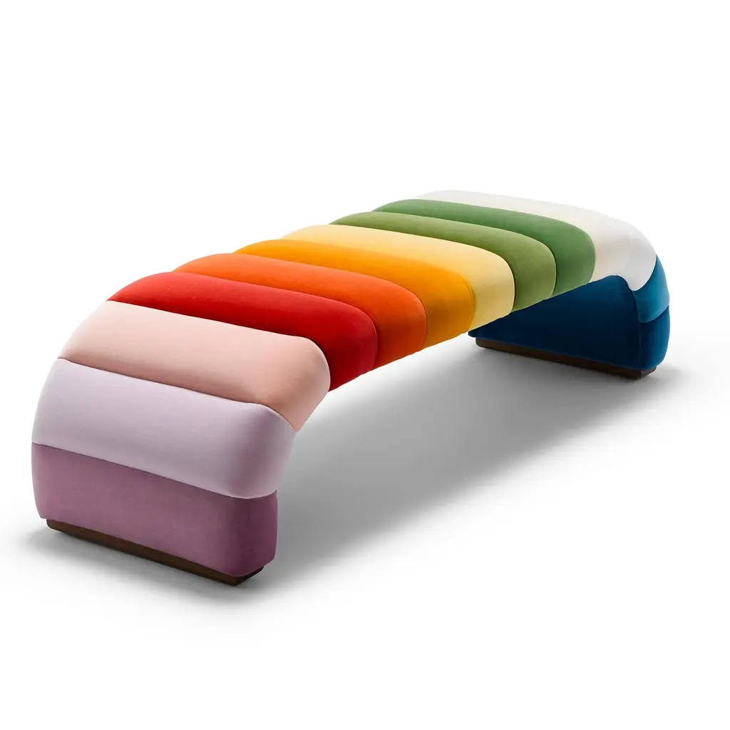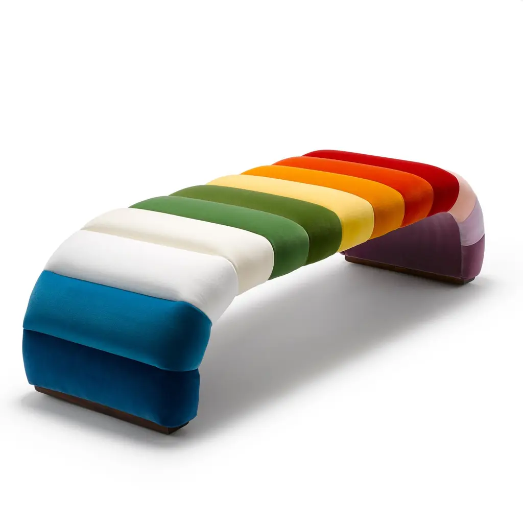 Contemporary Channeled Fleure Bench Laetus Multi Colours In Velvet With Walnut