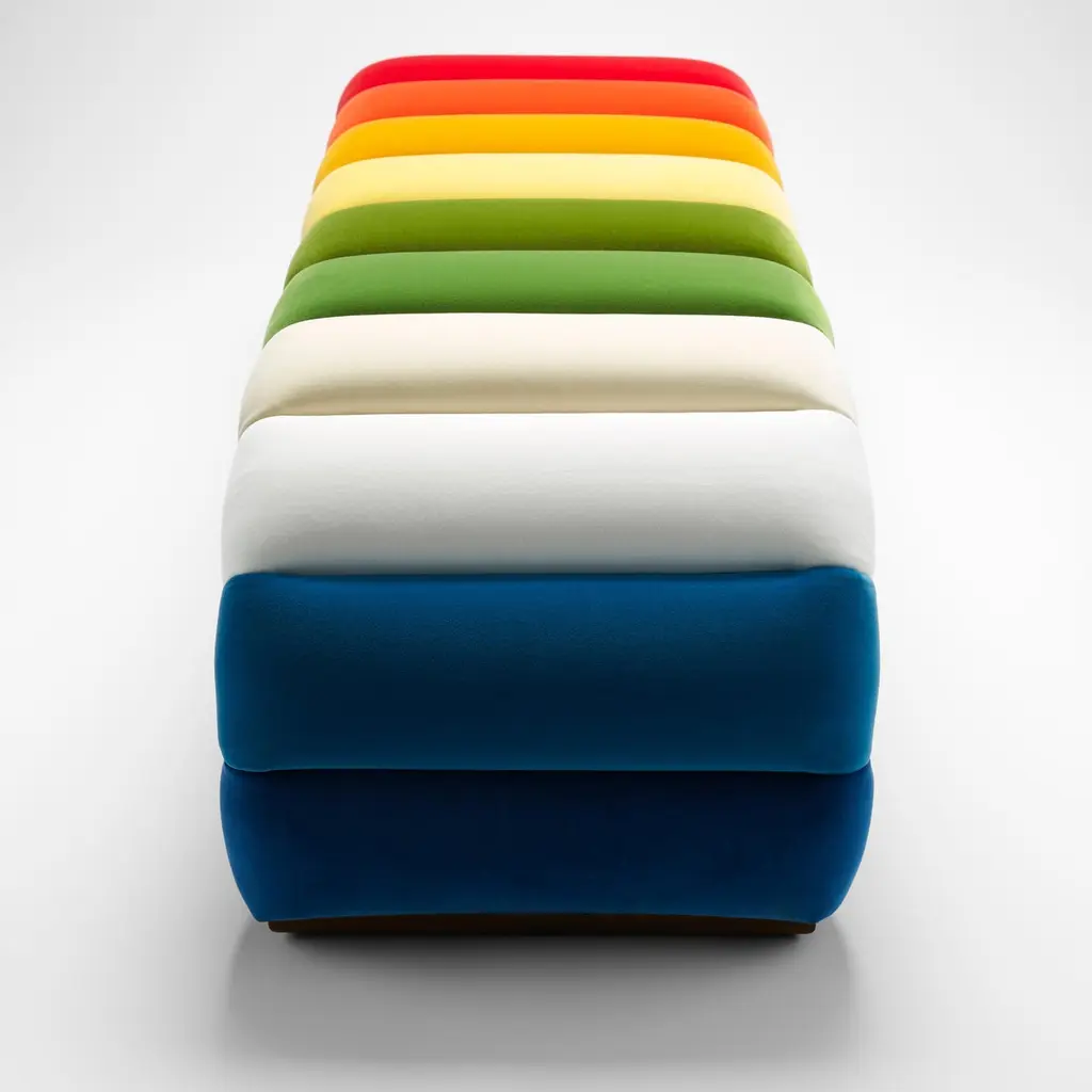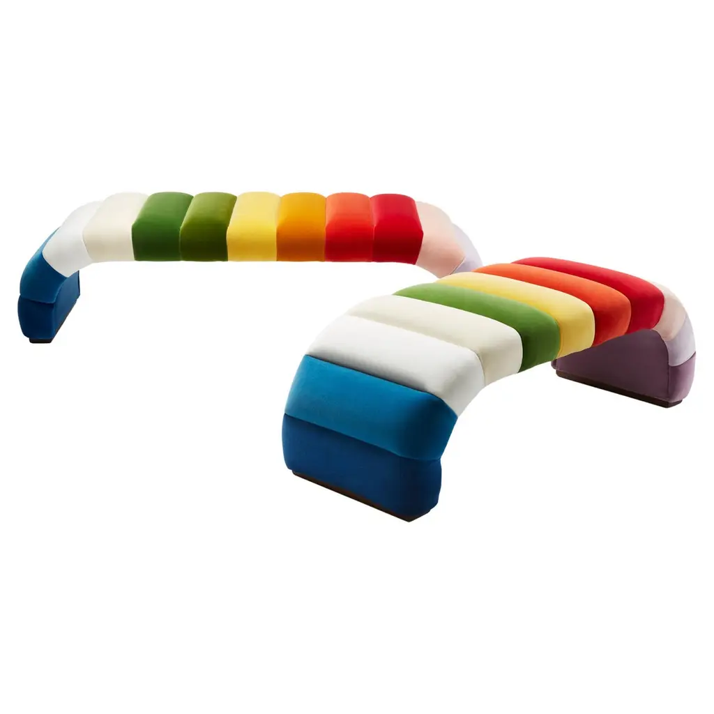 This Special Edition Fleure Bench comes with its exquisitely tailored flutes in 13 different colours. A departure from the signature one-colour looks of the other Stuart Scott pieces, the Laetus benches are a one-of-a-kind, welcomed into our 2023 collection. Laetus comes from the latin for colourful. It is joyful, cheerful, pleasing and luxuriant. Everything that Stuart Scott Furniture is at its core.The Laetus is also available in our signature Fleure Bench Midi style with 11 flutes of different colours.Construction: solid beech and birch frame with a webbed seat featuring a Channeled design. Upholstered in cotton velvet in shades Marine, Teal, Chalk, Parchment, Emerald, Grass, Primrose, Saffron, Paprika, Vermillion, Cameo, Crocus and Viola, with feet in oiled walnut. The feet are available in ebonised and black waxed walnut also. Please see images for details of these.Each Stuart Scott piece is built by hand in our workshop in Wiltshire, England. Nothing is mass-produced. This ensures complete attention to detail, structural integrity and sheer build quality. We never compromise. When we finish each piece, it is signed and numbered: a unique handmade masterpiece.