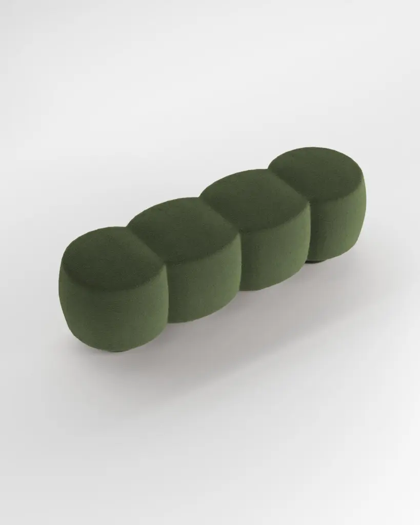 Contemporary Hygge Cloud Bench In Green Bouclé By Saccal Design House