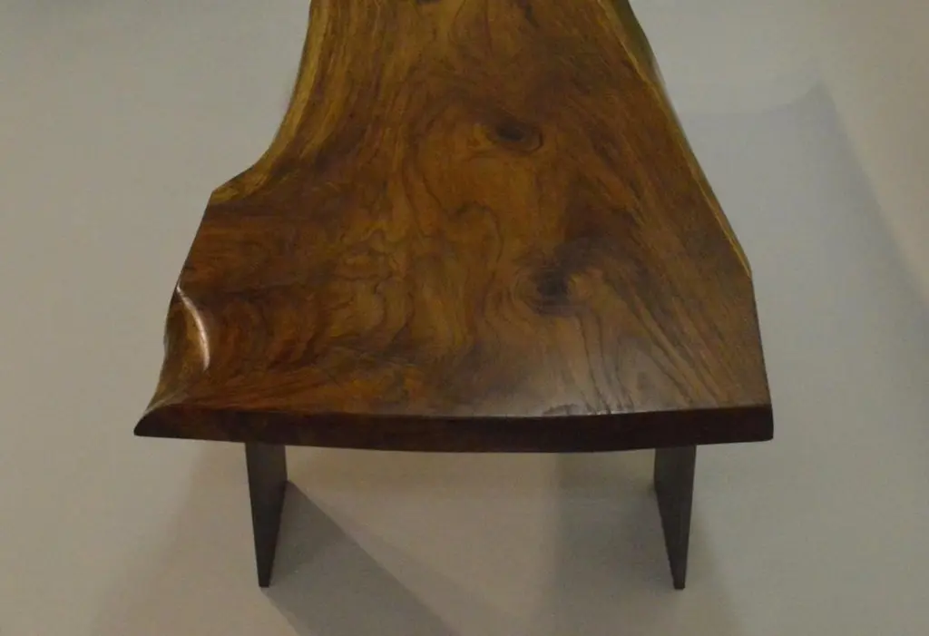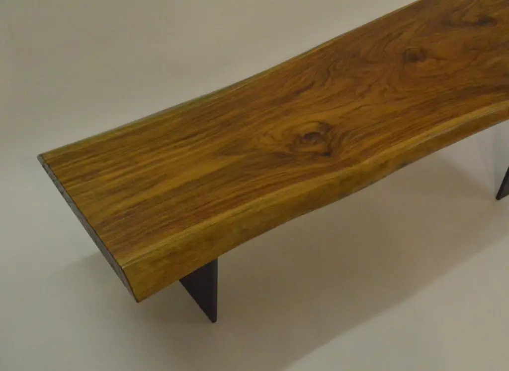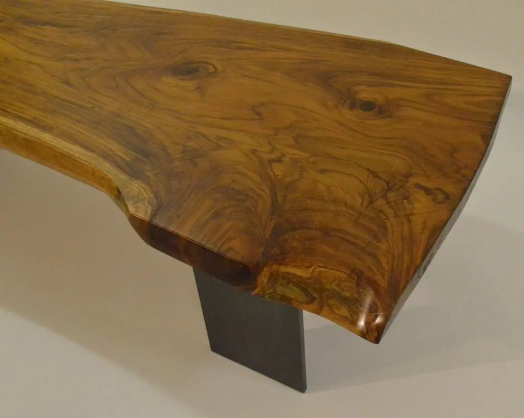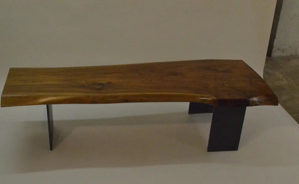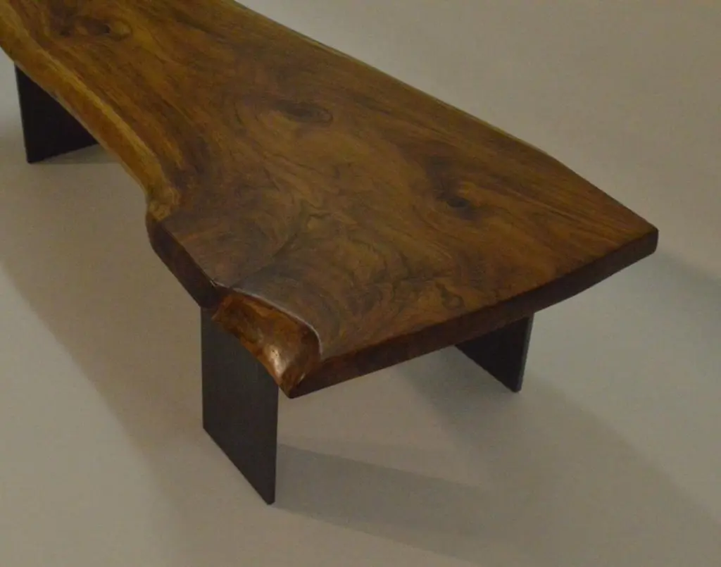 The San Francisco Bench, an original design, is a contemporary minimalist bench designed and produced in Vermont by Scott Gordon. Appropriate for indoors or out, the San Francisco Bench is comprised of a teak wood seat supported by blackened stainless steel legs. Shown here with a 2" thick teak wood plank finished with a hand applied oil. Overall dimensions shown 18" high, 16" -23" wide, and 72" long.Due to the nature and market of exotic wood, prices may vary. I only select the best, sustainably harvested woods.