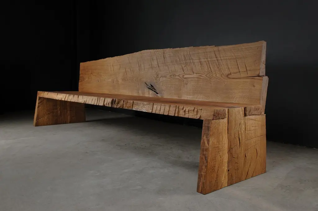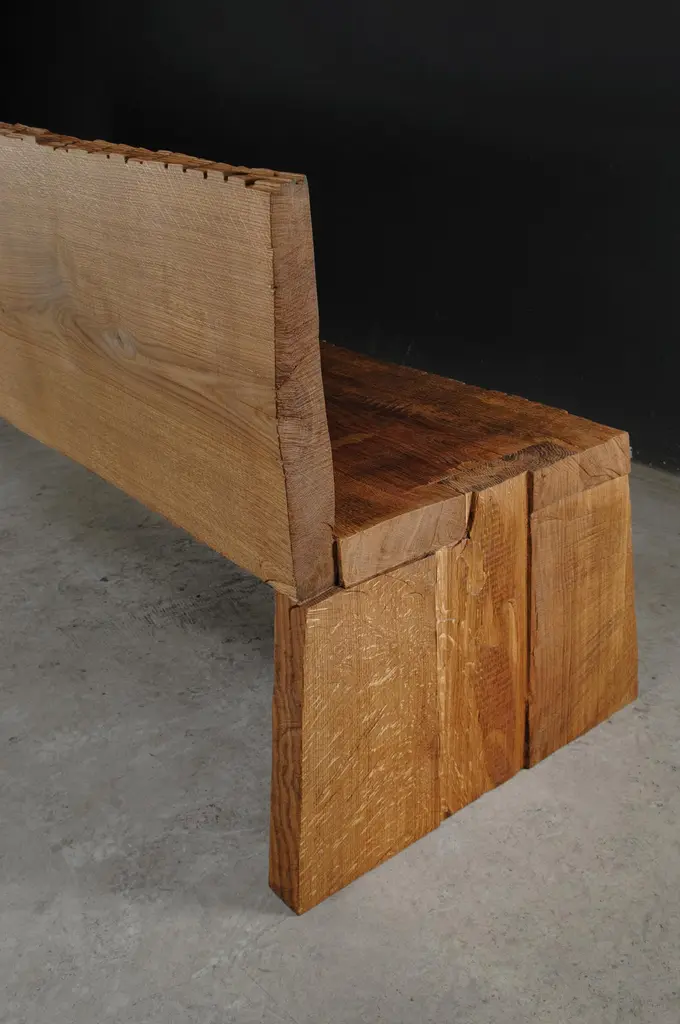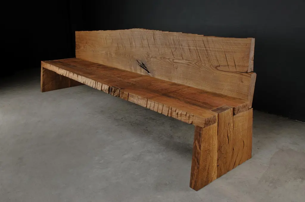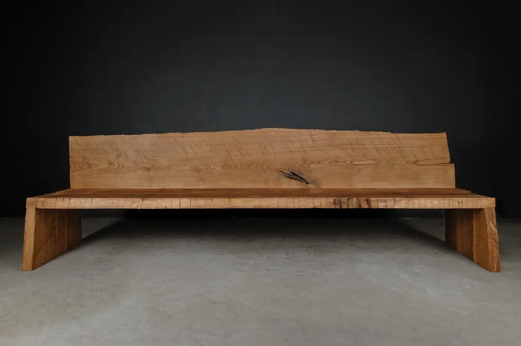 Contemporary Sculpted Bench With Backrest N1 By Soha Concept, Solid Oak