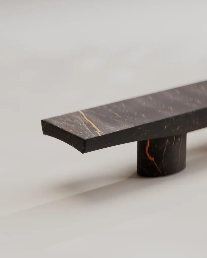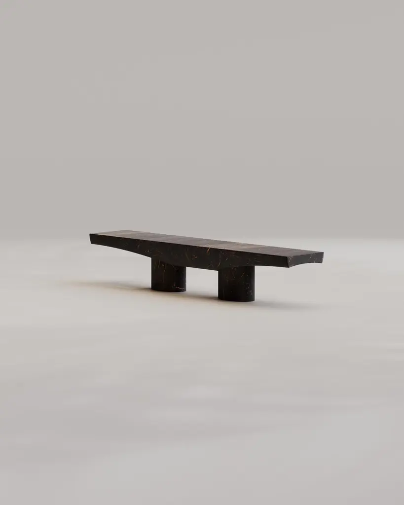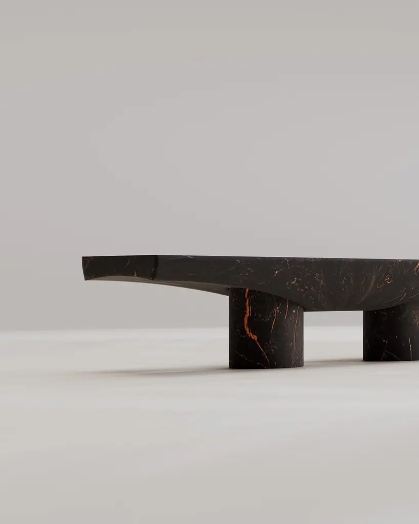 Introducing the "Abraccio" Collection or translated "embrace" Collection unites the enduring beauty of solid carved marble with a language of form that pays homage to primitive structures. Two primal shaped columns support a commanding horizontal solid slab. It becomes a conversation between classical and contemporary, nature and craftsmanship, geometric precision and organic shapes. Yet, it's the ellipsoid embrace that truly defines the collection's character. These graceful curves, meticulously carved into the stone, encircle the columns like an enigmatic story waiting to be deciphered. This ellipsoidal motif not only adds a layer of visual allure but also imparts a sense of unity and balance, bridging the gap between the geometric precision of the columns and the softer lines of the surrounding space.Hand crafted solid marble by Serafini. Each stone will be selected together with the client to create the desired effect. Custom stones/marbles are possible upon request. We can also do different sizes.