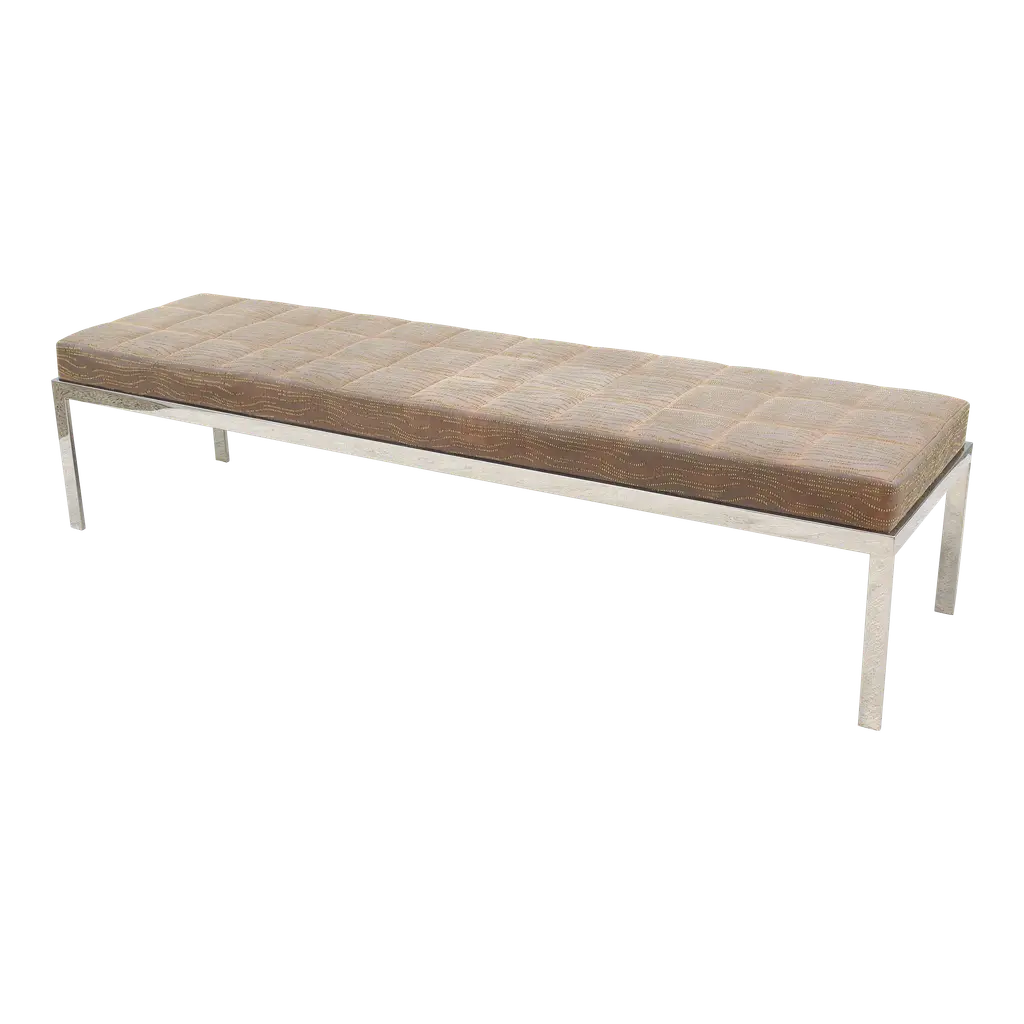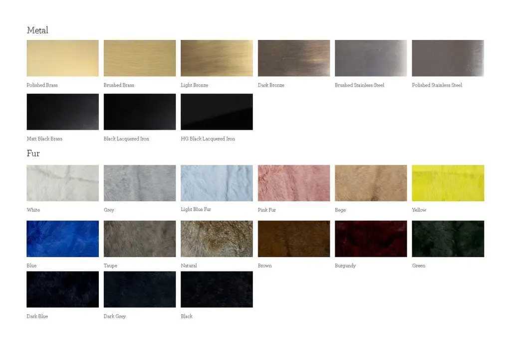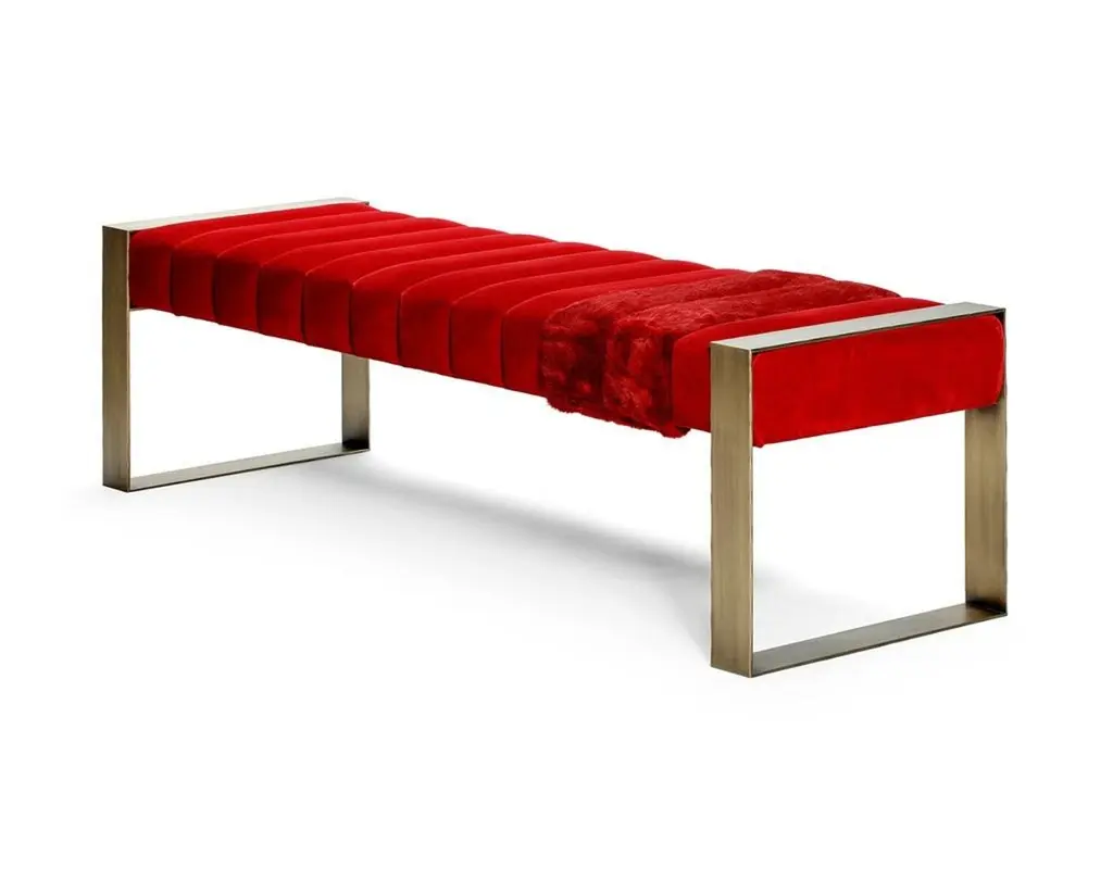 Contemporary bench is a statement design piece. The design is inspired by the pieces clear horizontal lines and stability that the stripes and open structure provides. This bench is a contemporary upholstered piece with an interesting twist of two fur strips. It evokes strength with the use of straight lines while the fur elements add a touch of luxury. This is an incredibly versatile piece in a variety of colors.Shown in velvet with two stripes in rabbit grey fur. Structure in carved light bronze. Available in our range of fabrics, and furs. Specify desired fur and velvet color from images. Dimensions:Width 160cm 63”Depth 50cm 20”Height 45cm 18”.Please contact us if you have any questions about customization and pricing. We will be glad to check with the factory’s technical team if sizes, finishes, and colors can be customized. We do our best to expedite production and to ship and deliver product within the listed lead time, however current lead times might be longer due to global shipping backlog and delays. These delays are out of our control and cannot be a reason to cancel an order.