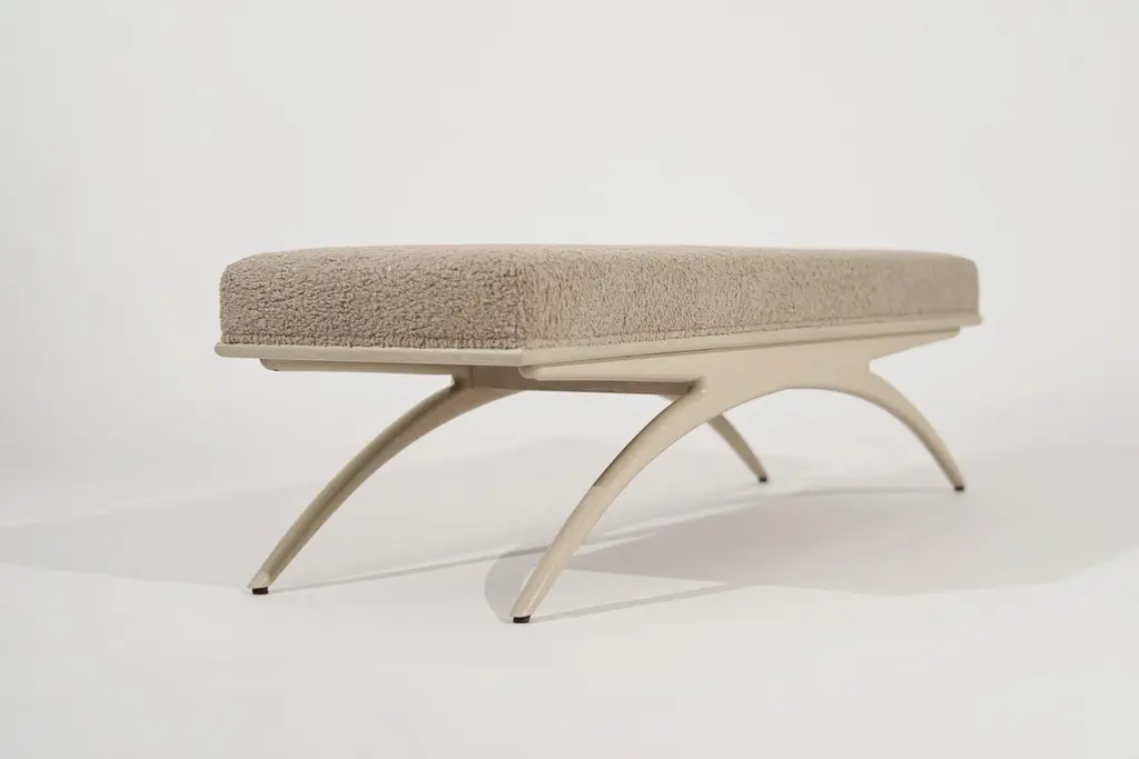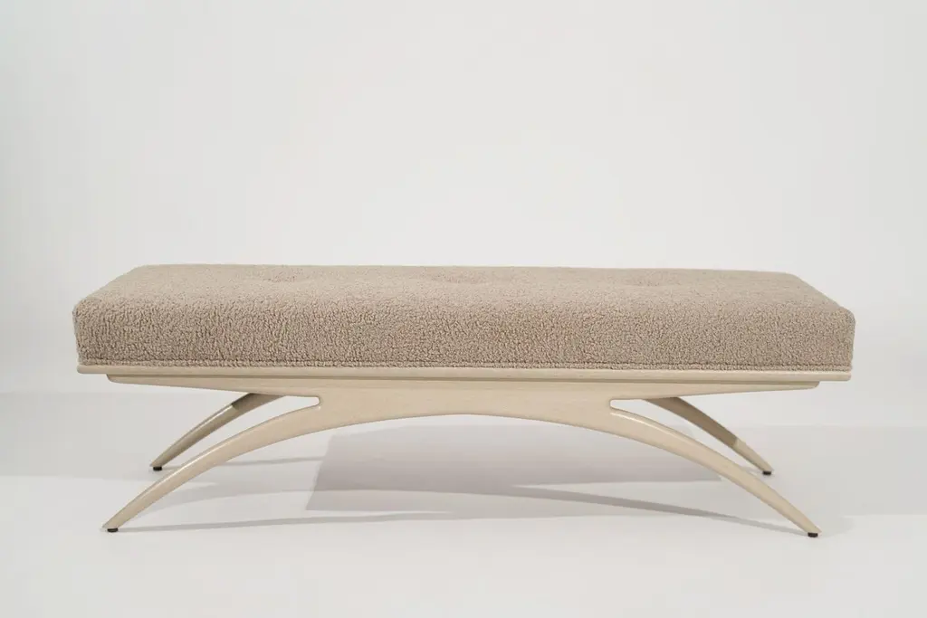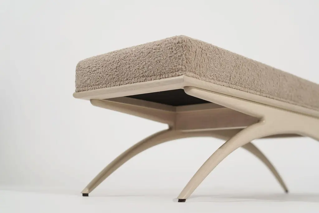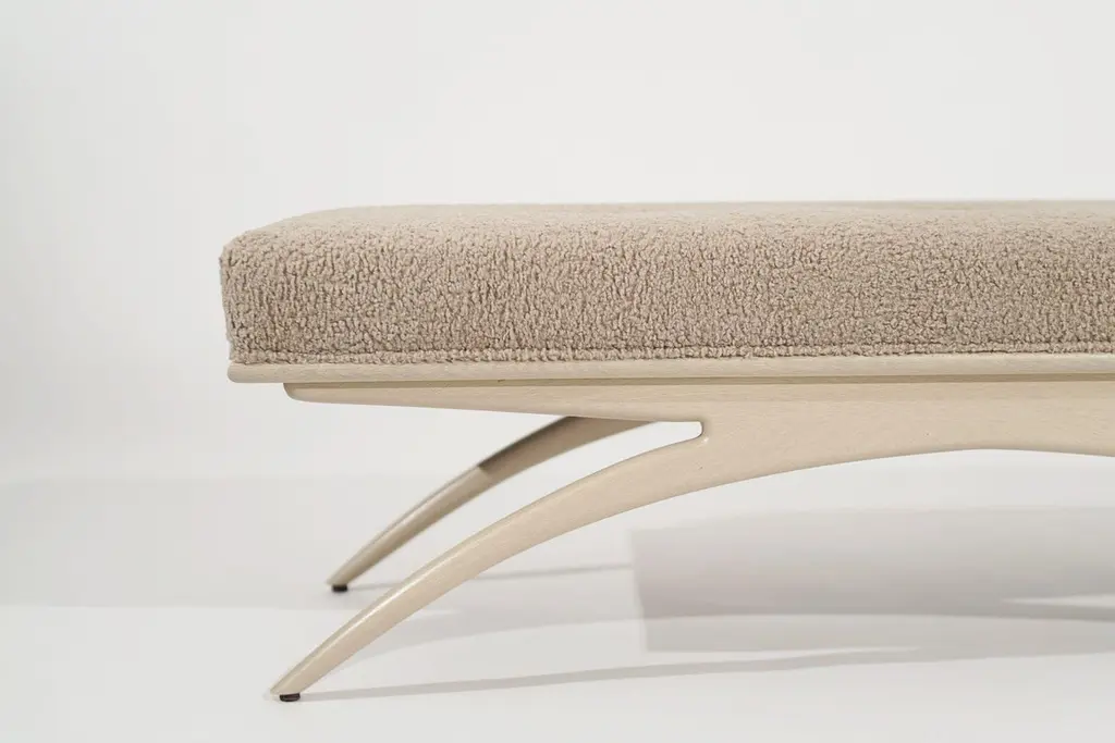 Introducing the Convex Bench by Carlos Solano for Stamford Modern—an exquisite blend of timeless craftsmanship and lightweight design. Meticulously crafted from solid oak or walnut, this bench exudes sophistication, making it a perfect complement to any interior. The plush upholstered cushion offers a luxurious seating experience, with customizable options for your own material or leather. Choose from finishes like Natural Walnut or White Oak to suit your aesthetic preferences.The Convex Bench is available in standard sizes of 72, 60, and 48 inches or can be customized to fit your unique space. With a swift production lead time of just 8 weeks, you'll have this elegant piece in your home in no time. The bench is offered in COM/COL only, requiring 4 yards of fabric.Explore our gallery of pictures showcasing available finishes. Contact us for a personalized quote on custom dimensions.