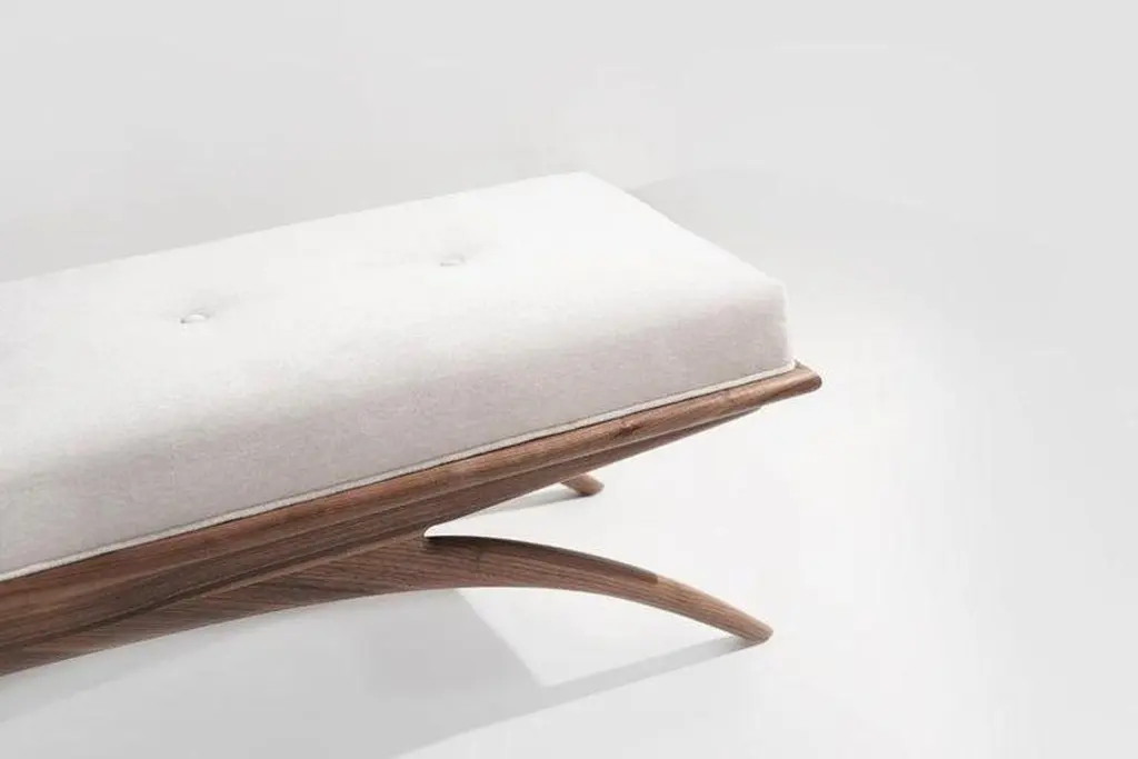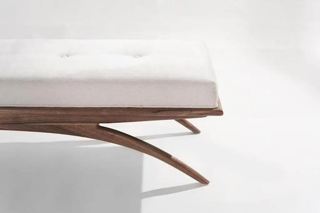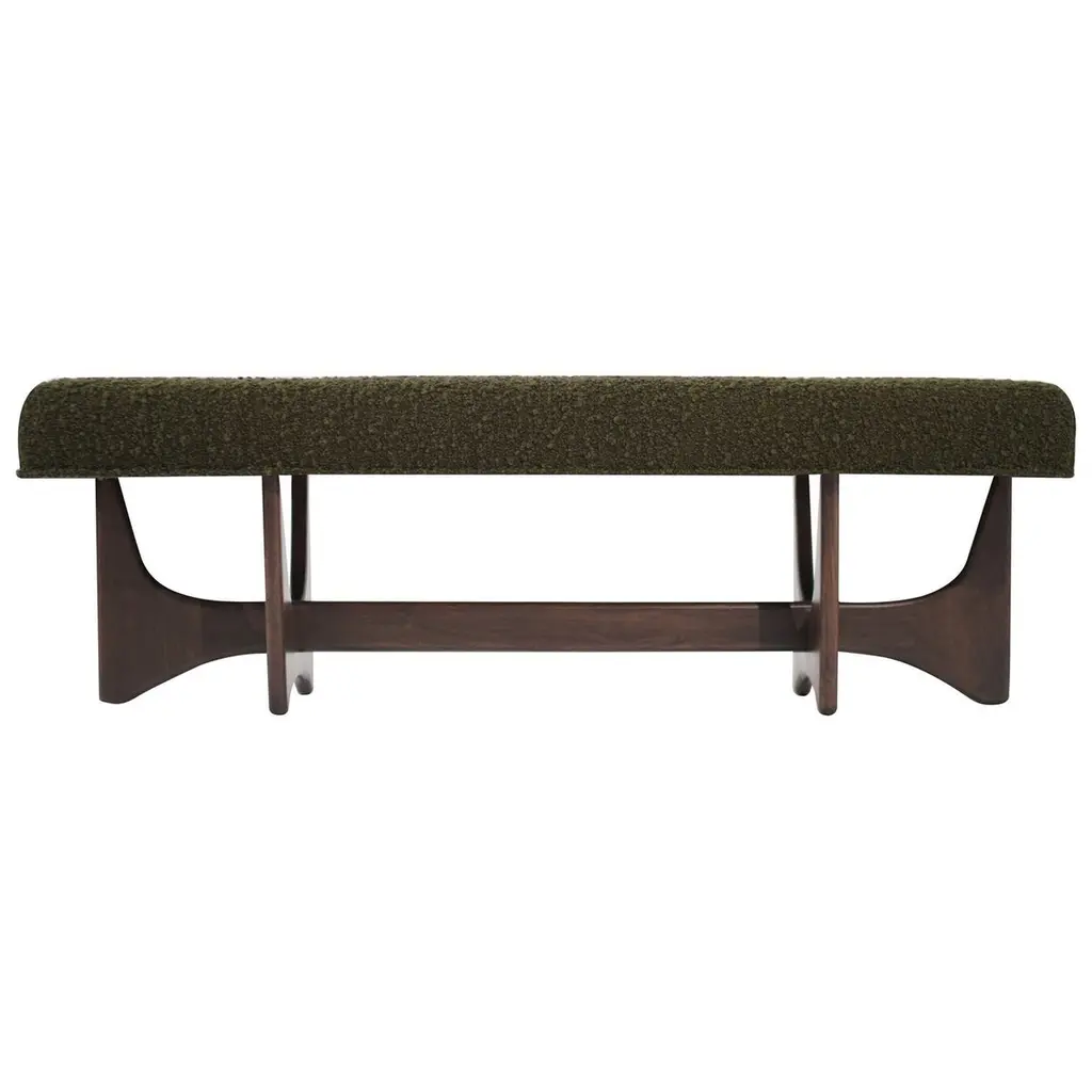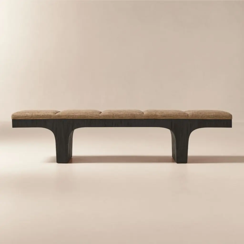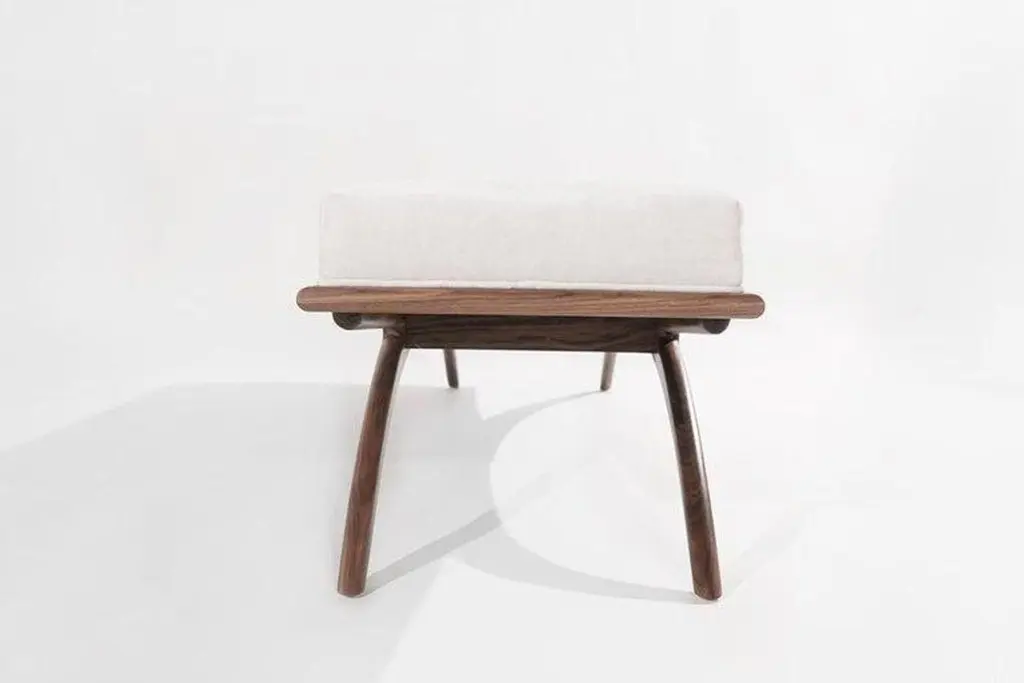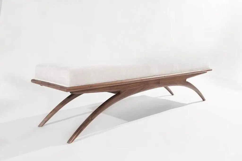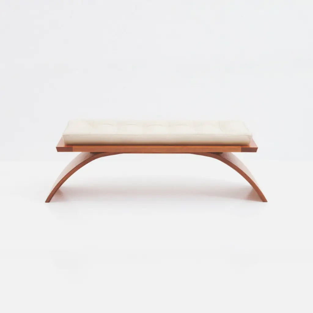 Introducing the Convex Bench by Carlos Solano for Stamford Modern—an exquisite blend of timeless craftsmanship and lightweight design. Meticulously crafted from solid oak or walnut, this bench exudes sophistication, making it a perfect complement to any interior. The plush upholstered cushion offers a luxurious seating experience, with customizable options for your own material or leather. Choose from finishes like Natural Walnut or White Oak to suit your aesthetic preferences.The Convex Bench is available in standard sizes of 72, 60, and 48 inches or can be customized to fit your unique space. With a swift production lead time of just 8 weeks, you'll have this elegant piece in your home in no time. The bench is offered in COM/COL only, requiring 4 yards of fabric.Explore our gallery of pictures showcasing available finishes. Contact us for a personalized quote on custom dimensions.