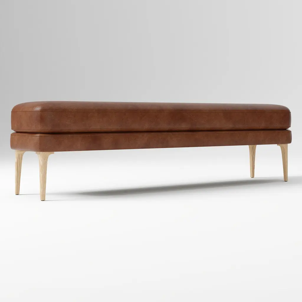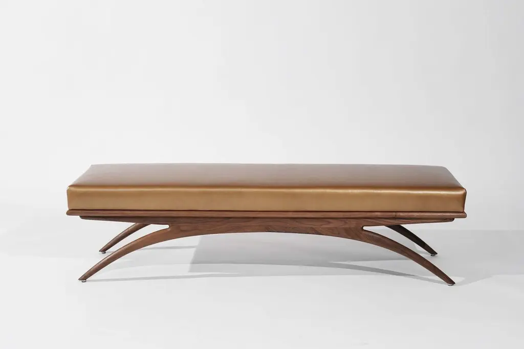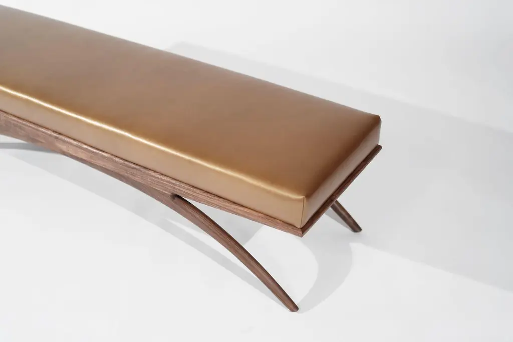 Introducing the Convex Bench by Carlos Solano for Stamford Modern—an exquisite blend of timeless craftsmanship and lightweight design. Meticulously crafted from solid oak or walnut, this bench exudes sophistication, making it a perfect complement to any interior. The plush upholstered cushion offers a luxurious seating experience, with customizable options for your own material or leather. Choose from finishes like Natural Walnut or White Oak to suit your aesthetic preferences. The Convex Bench is available in standard sizes of 72, 60, and 48 inches or can be customized to fit your unique space. With a swift production lead time of just 8 weeks, you'll have this elegant piece in your home in no time. The bench is offered in COM/COL only, requiring 4 yards of fabric. Explore our gallery of pictures showcasing available finishes. Contact us for a personalized quote on custom dimensions.
