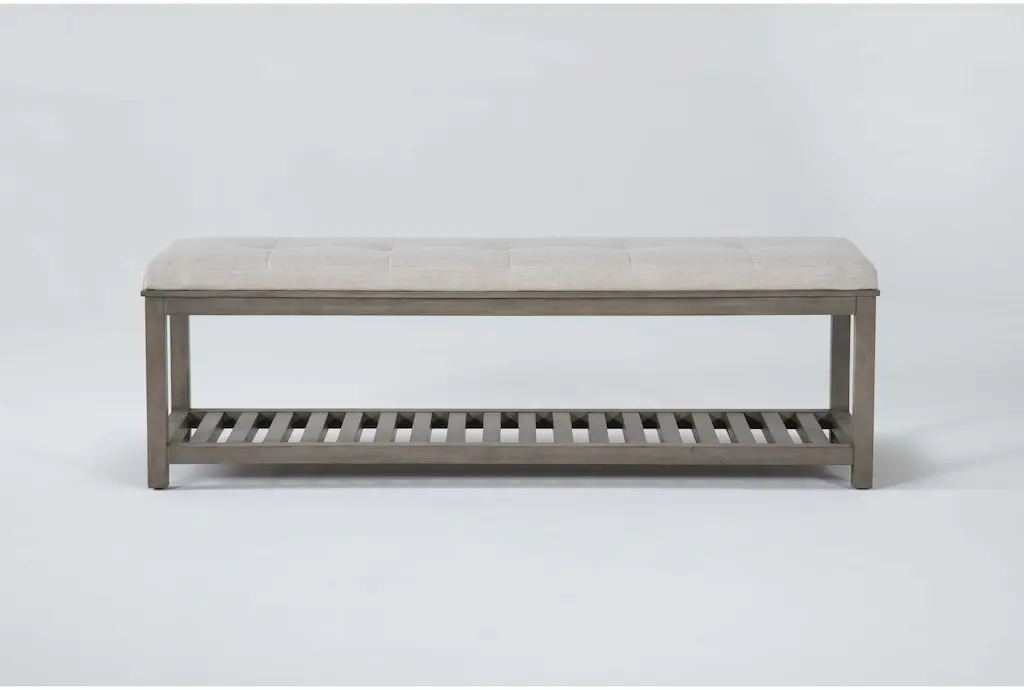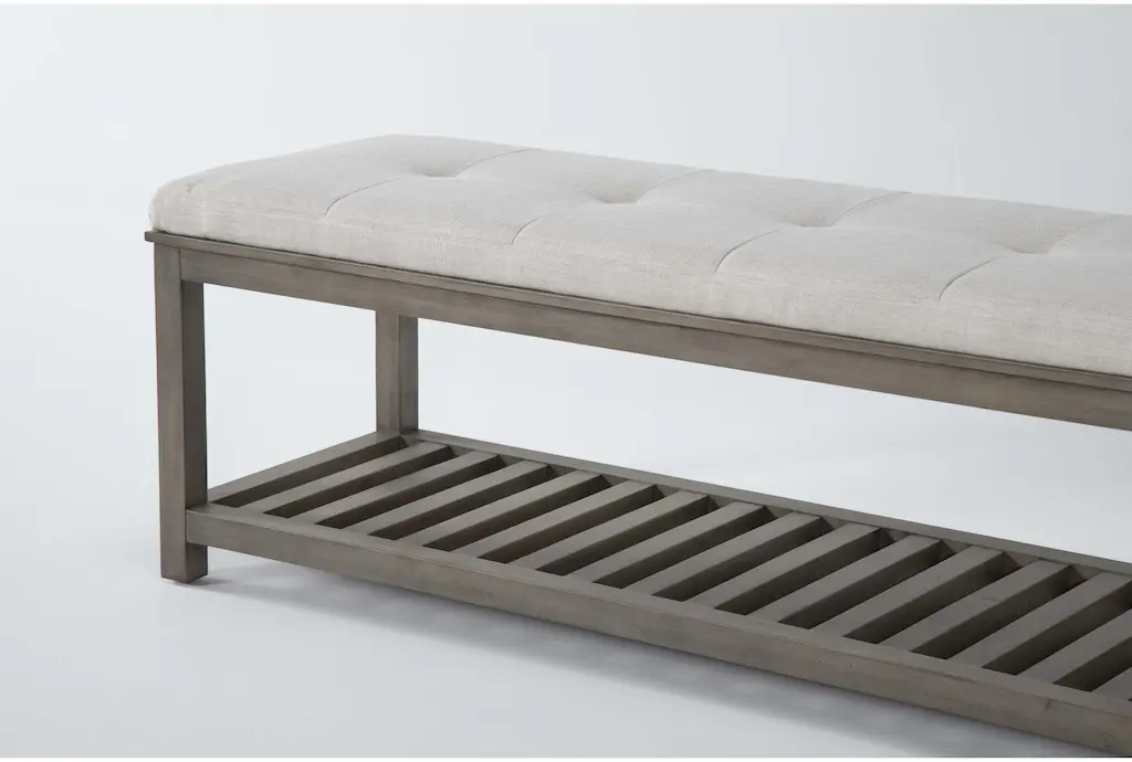 Create a sanctuary of distinctive natural beauty with our Corina bedroom collection. These handcrafted designs feature reclaimed pine, which brings unique character, high quality and exceptional durability to your space. Decked in a weathered ash finish, each item possesses rustic charm and streamlined appeal for a look that’s at once rugged yet modern. In addition to offering an abundance of storage pieces, the bench showcases the soft and stylish element of upholstered seating.