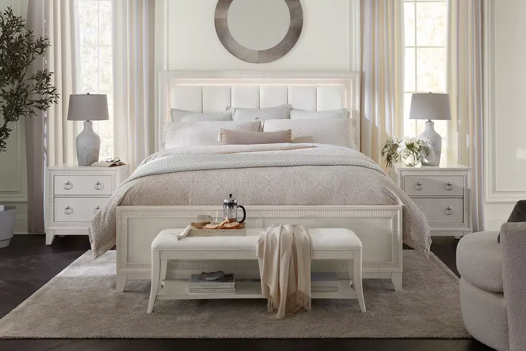 Add the perfect seat to your sleep sanctuary with our Corsica bench. This piece is expertly crafted with hardwood solids and embossed cherry veneers and features a fixed wooden shelf that's perfect for storing extra blankets, slippers and other bedroom must-haves.