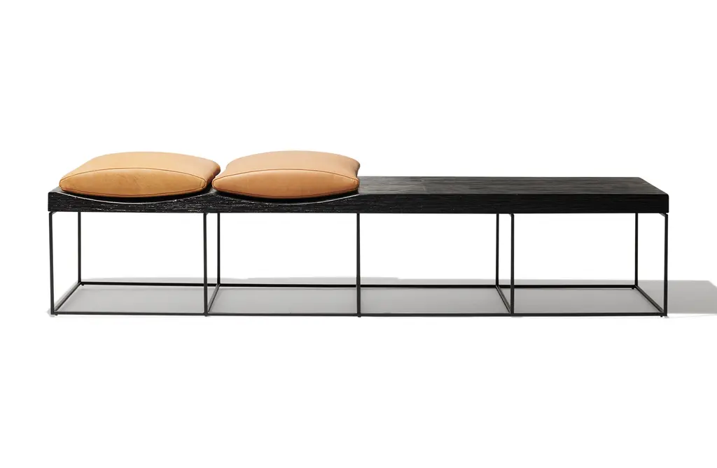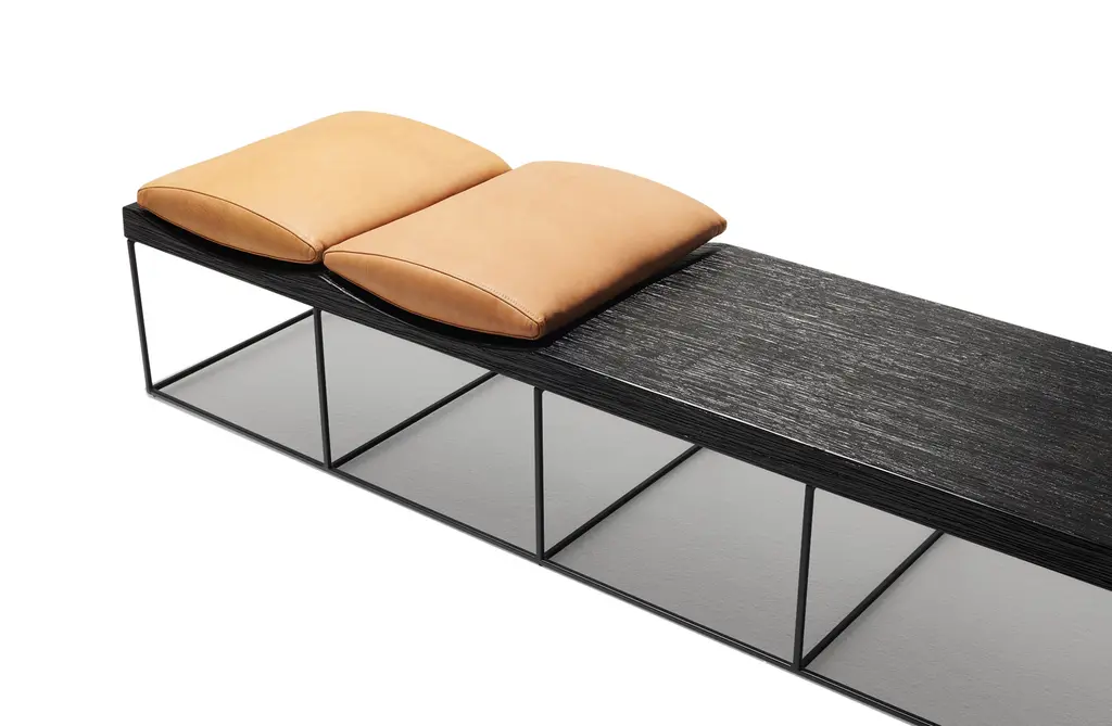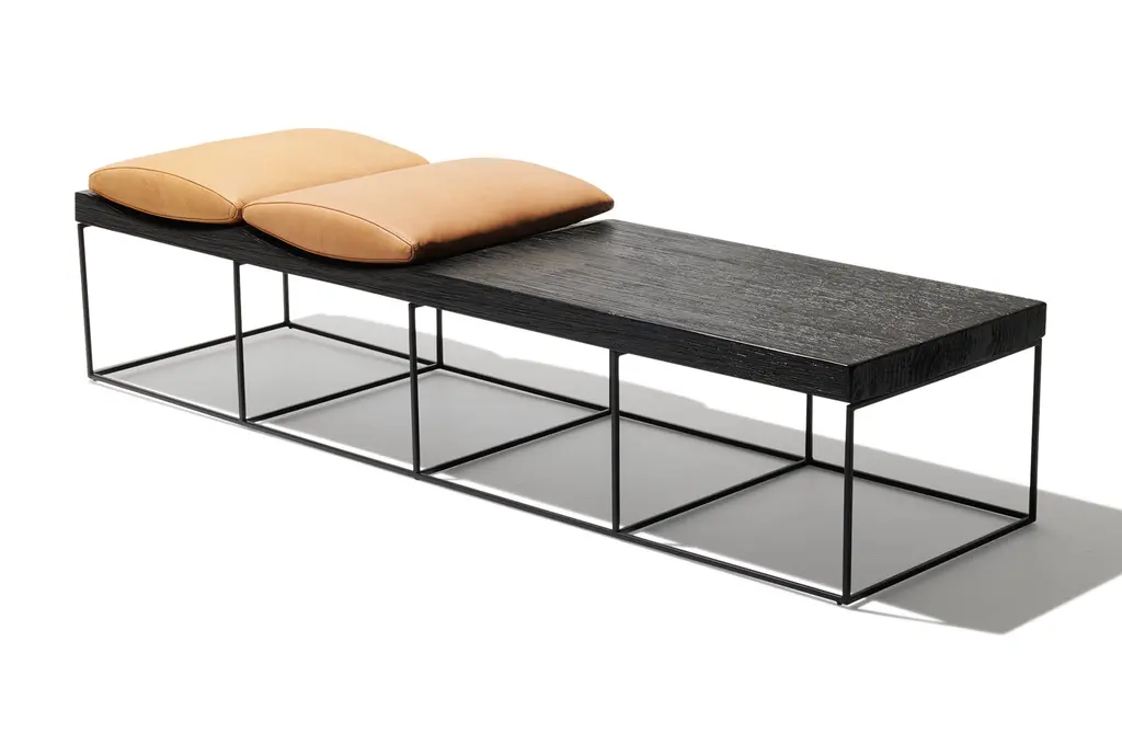 Streamline your entryway with a piece for seating and storage. The Cortina Bench is a geometric statement piece, despite its low profile and minimalistic rectangular shape. Incorporate into any room as a subtle partition of space.