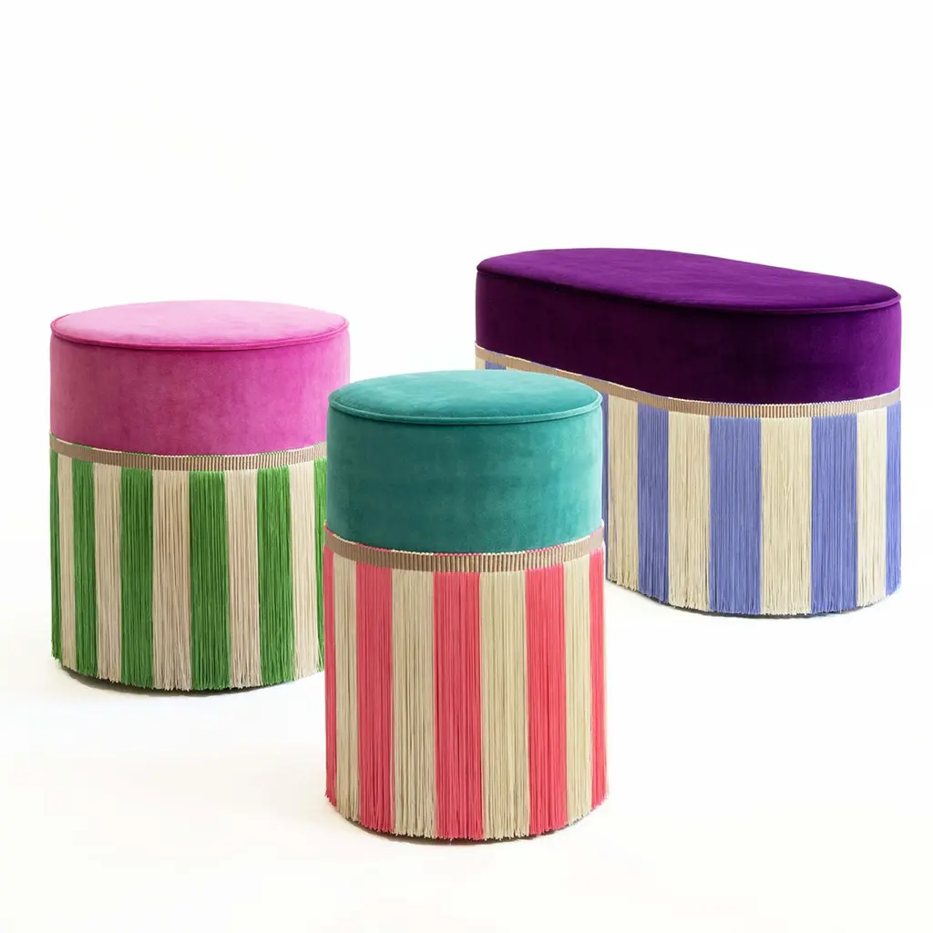 Designed with style and comfort in mind, this bench is a sartorial gem where the fanciness of its viscose fringes - which create a lilac and off-white striped design - well goes with the rich orchid tone of the refined velvet seat. Marked by rounded profiles underlining its modern spirit, the design ensures exceptional resistance thanks to its sturdy beech structure.