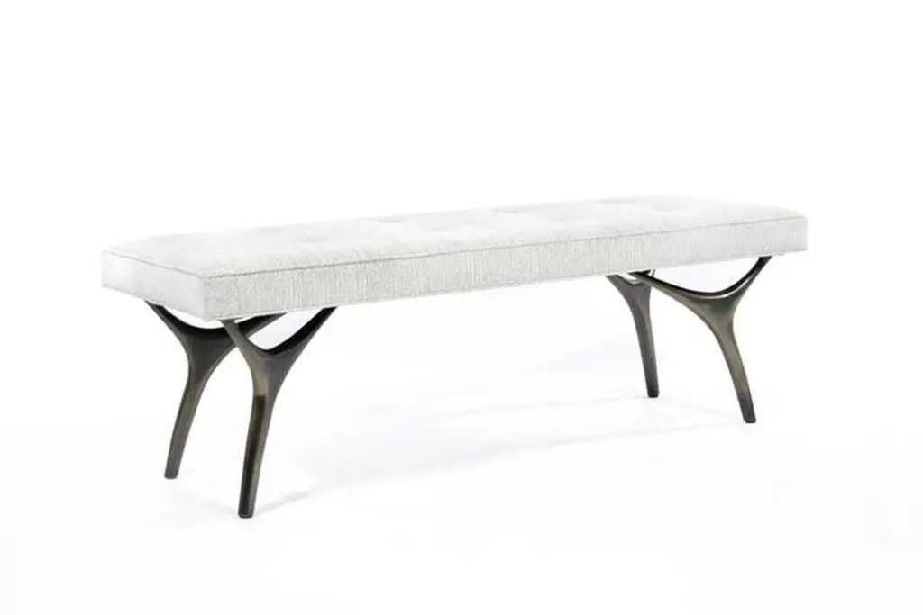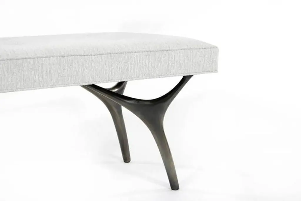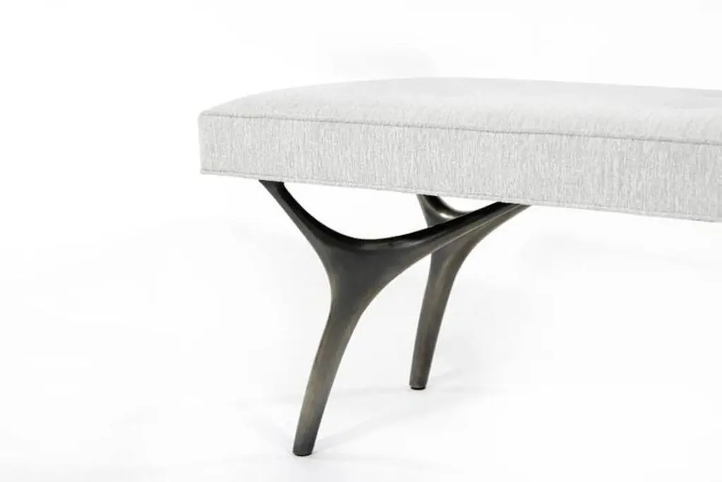 The Crescent Bench - a harmonious blend of elegance, stability, and artistic craftsmanship. Supported by four solid brass casted legs, this exquisite bench ensures enduring quality and a sculptural form that seamlessly marries modern aesthetics with timeless elegance.Customizable in sizes from 42" to 72", with standard dimensions of 18" x 18" in height and depth, The Crescent Bench allows you to tailor it to your unique vision.Available only in COM or COL (4 yards required) or COL (55 sq ft required), and with leg finishes in brass, nickel, bronze, or ORB, it seamlessly integrates with your decor. See images for all finishes available.Elevate your space with this impeccable design, a perfect synthesis of form and function.