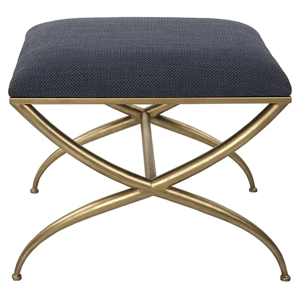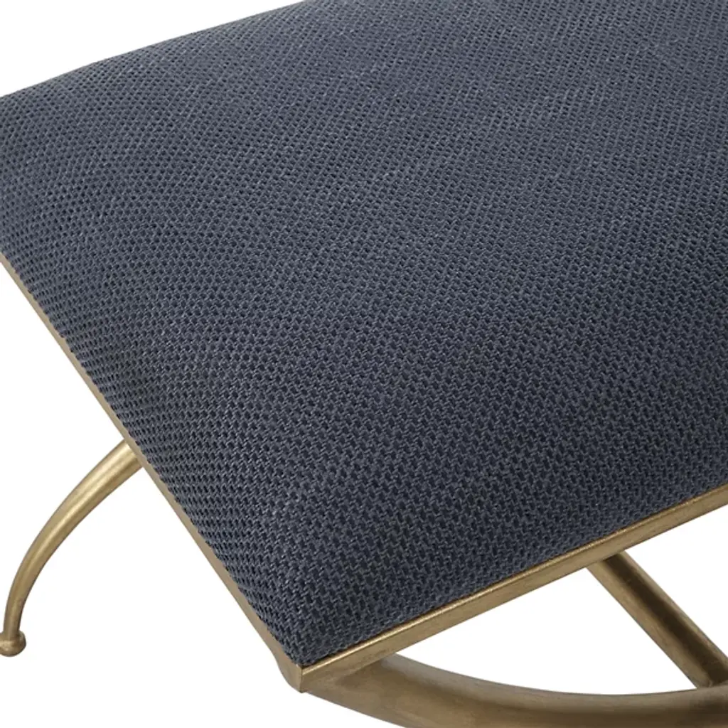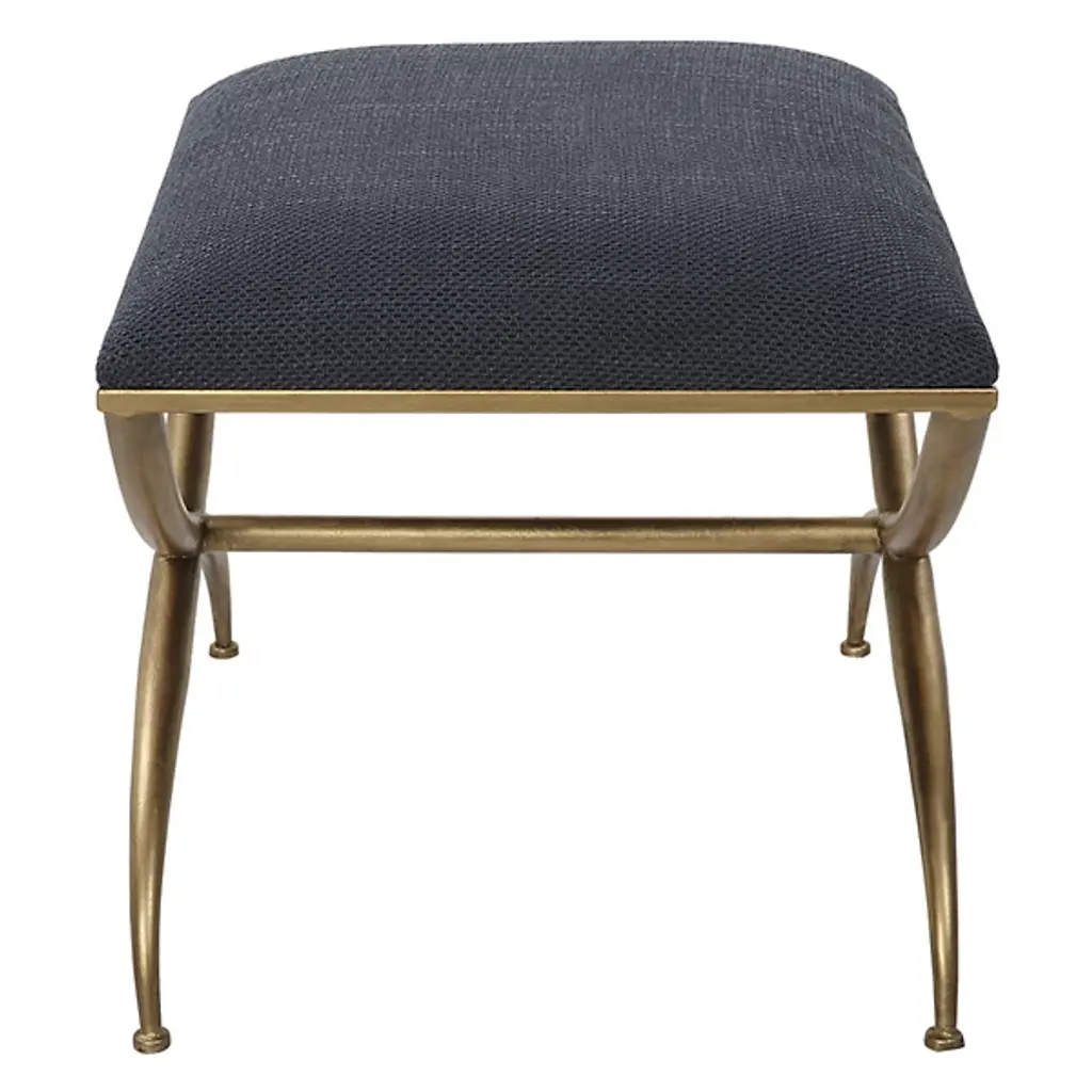 The Crossing Bench from Uttermost showcases classic yet modern elegance. This small bench has a gracefully curved iron frame, adding a touch of sophistication to any space. The cushioned top, upholstered in crisp white fabric, offers both comfort and style, making it a versatile seat or footrest. Your bench boasts exquisite contours, an iron frame, foam fill, and MDF for durability and quality. Elevate your decor with this timeless yet contemporary masterpiece, a wonderful blend of style and comfort.