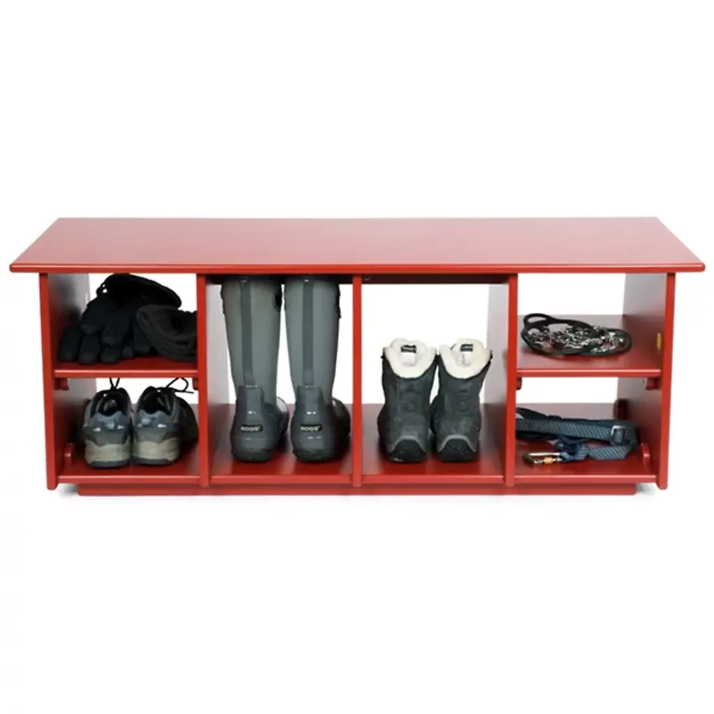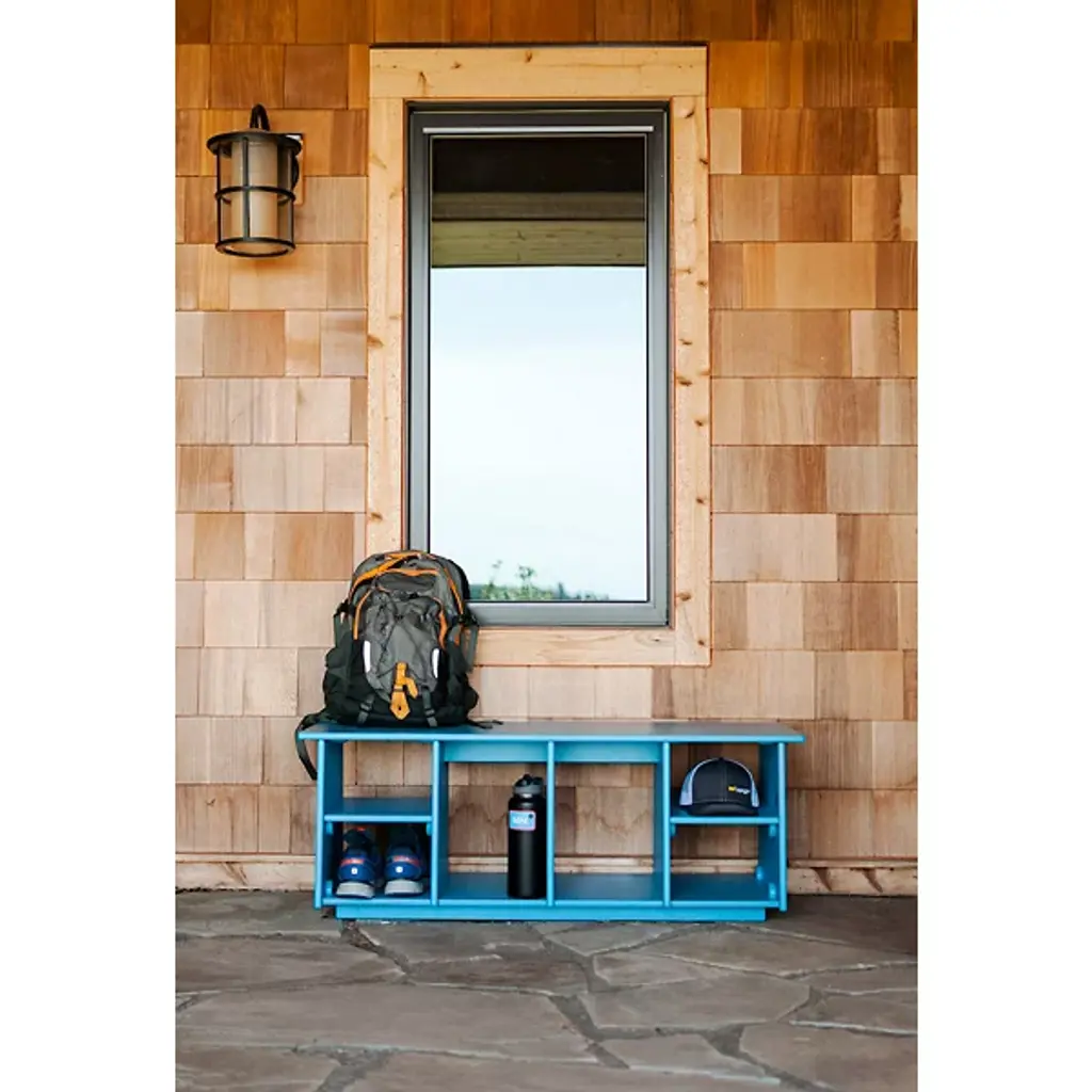 The Loll Designs Cubby Bench with Boot Holes provides a convenient place in which to take off your shoes, as well as an organized way to store them. The various cubbies accommodate shoes and boots, bags, helmets and other outdoor gear. It is made out of recycled milk jugs and non-recycled HDPE and comes in a variety of attractive colors.