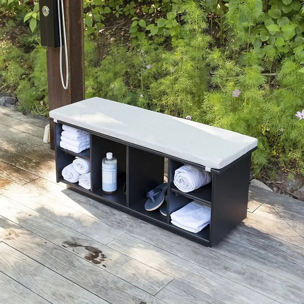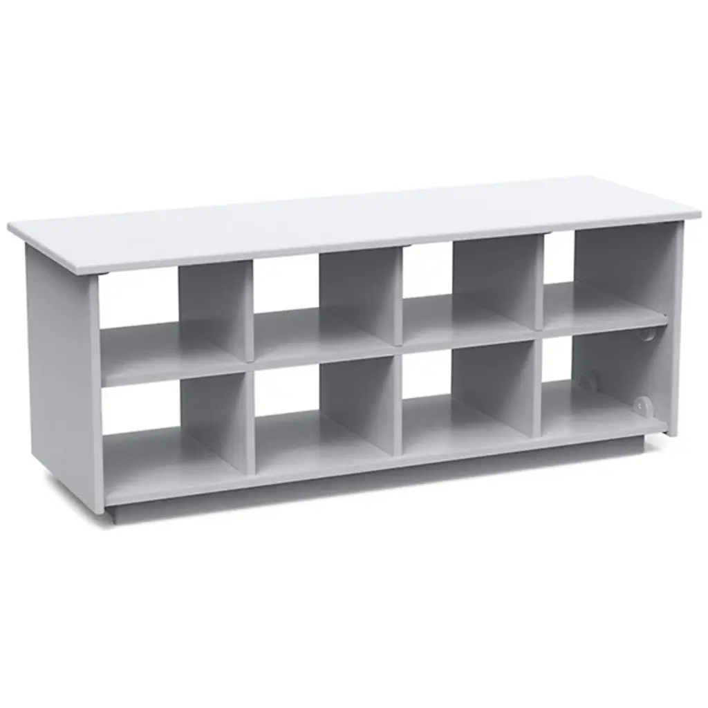 Add storage and style to your outdoor patio décor with the Cubby Outdoor Bench from Loll Designs. As sustainable as it is appealing, this piece is made of recycled milk jugs and non-recycled HDPE. The wide variety of color choices ensures it stands out in style while becoming a comforting place to put shoes on or casually enjoy a cup of tea or coffee. The cubbies below are the perfect size for shoes, boots, and other outdoor toys, tools, or accessories.