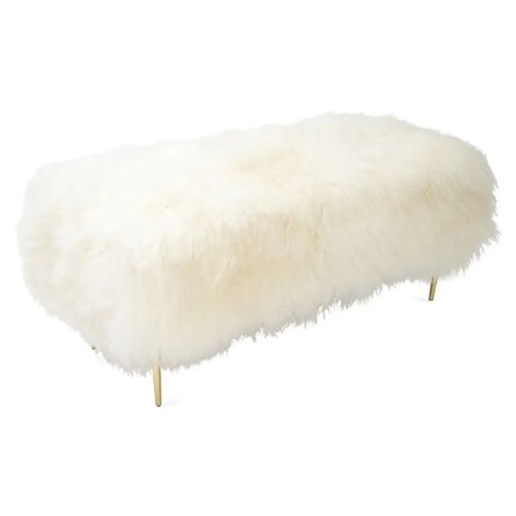 Curly and plush Tibetan lambswool tops the streamlined legs of this bench, which is amply padded to ensure that it's as comfortable as it is eye-catching. Made in the USA.
