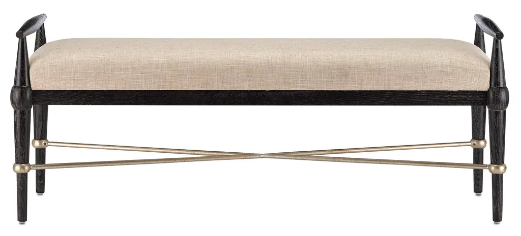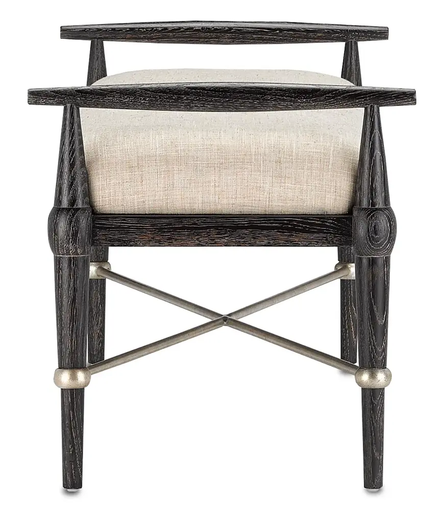The Perrin Natural Bench is our director of furniture Aimee Kurzner’s take on mid-century modern but with a slight transitional twist. Made of oak in an ebonized taupe finish, the dark brown bench is ornamented with iron stretchers in a silver Granello finish. Upholstered in a F0214 Finn Natural fabric, which is made of 100 percent polyester. We also offer the Perrin Natural as an ottoman. Cleaning code: S. Oak/Iron/F0214 Finn Natural Fabric, Ebonized Taupe/Silver Granello Care Instructions: Dust with dry, lint-free cloth, spot-clean