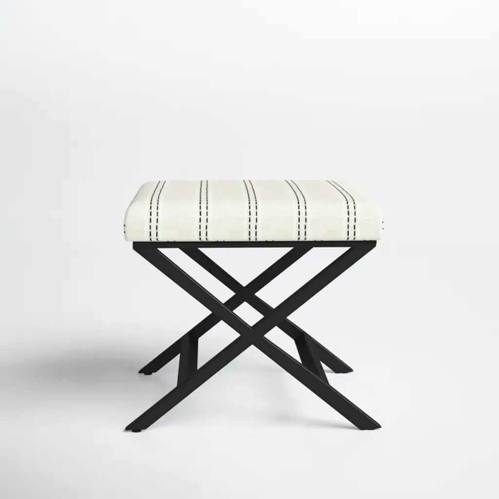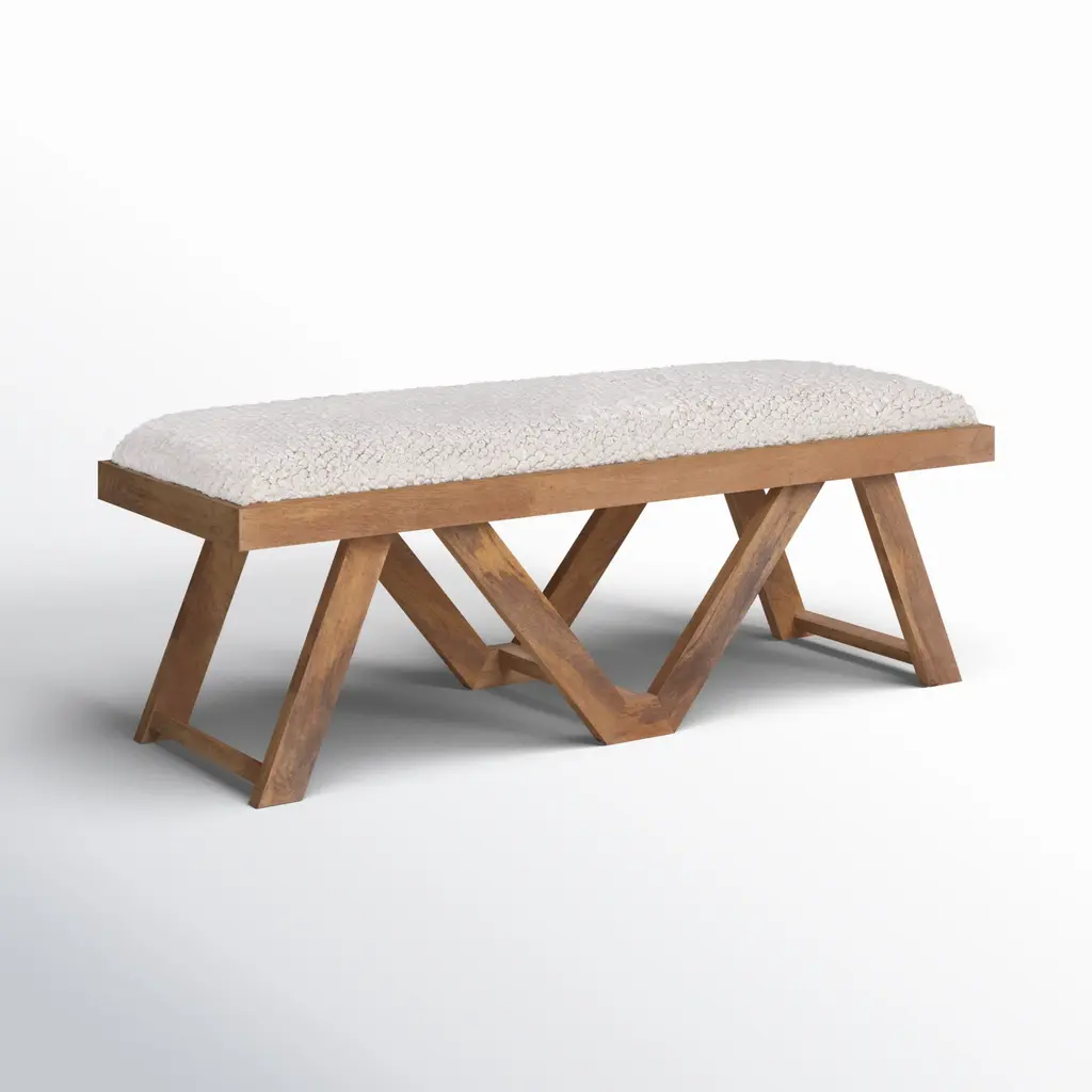 Custom cerused oak X-frame bench. This is sold as an individual item.This bench can be finished with wood finish. Upholstery is not included. COM is additional.The turnaround time is 8- 10 weeks,