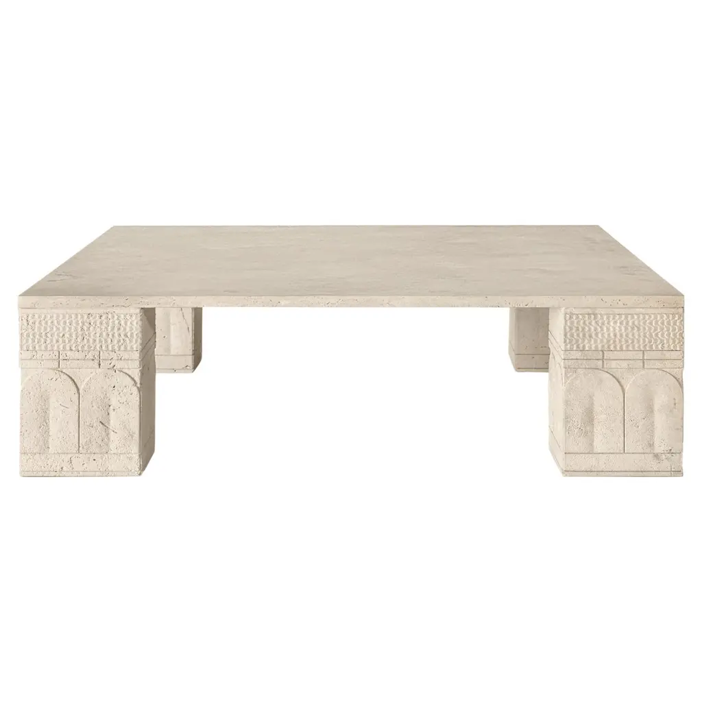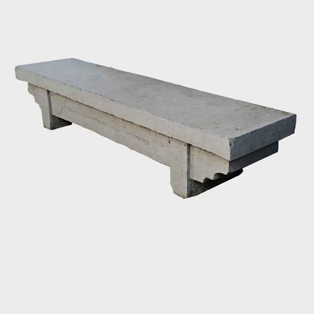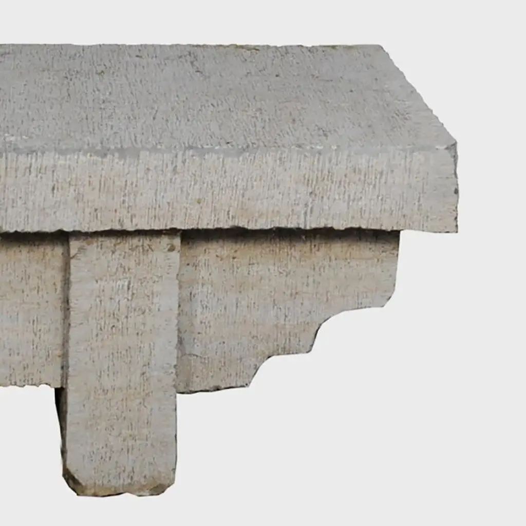 This simply designed doon bench from China's Shanxi province is carved by hand from a single block of limestone. With a strong, low profile and subtle stepped spandrels, the bench honors the balanced proportions and minimal forms characteristic of Ming-dynasty design. As much an architectural element as it is a piece of furniture, the bench continues a long Chinese tradition of stone furniture, valued for its rich texture and inherent permanence. The timeless form sits just as beautifully outdoors as a sculptural bench as it does in modern interiors as a striking coffee table. Bench is made to order and can be made to custom dimensions. Lead time is 6-12 months.