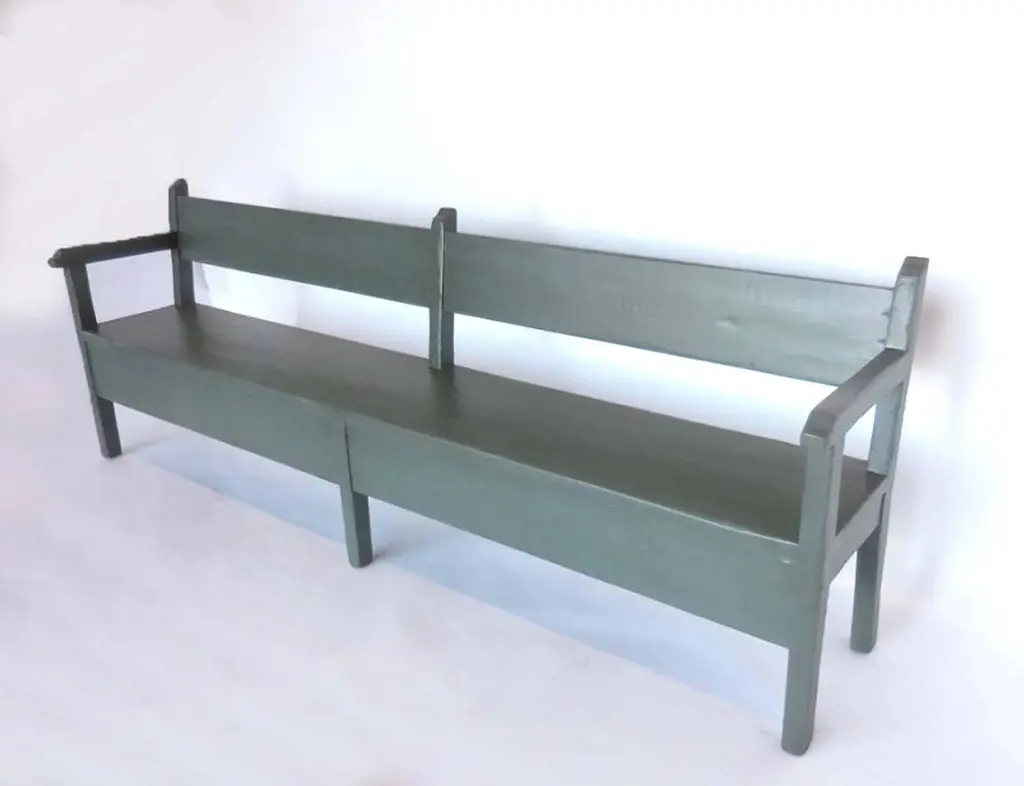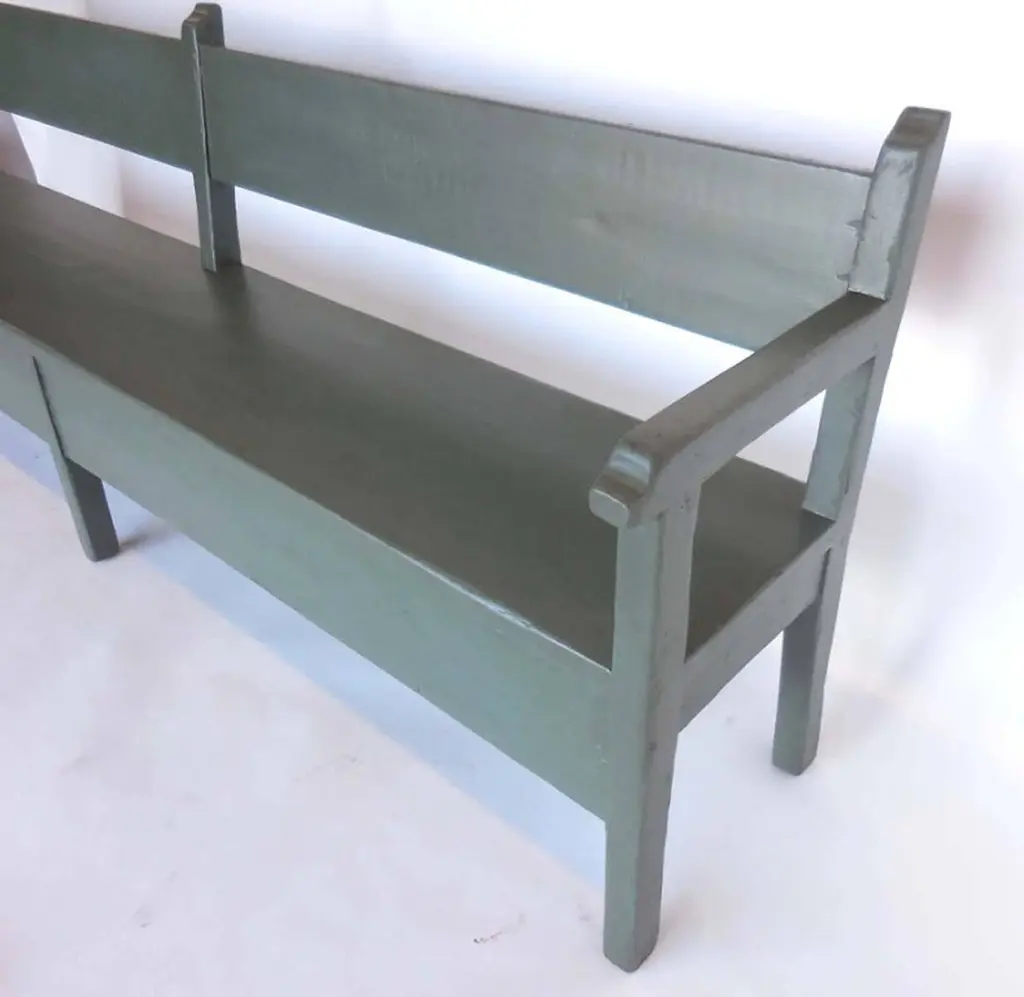 Custom bench made by Dos Gallos Studio. Can be made any size and in custom finishes. As shown here, in Coldwell Green, Benjamin Moore HC-124 with an antique glaze. Made in Los Angeles.PRICES ARE SUBJECT TO CHANGE. PLEASE INQUIRE BEFORE PLACING AN ORDER. CUSTOM ORDERS ARE NON RETURNABLE. FINAL SALE