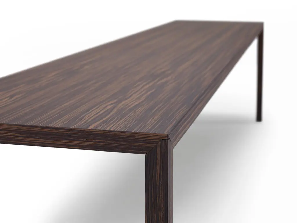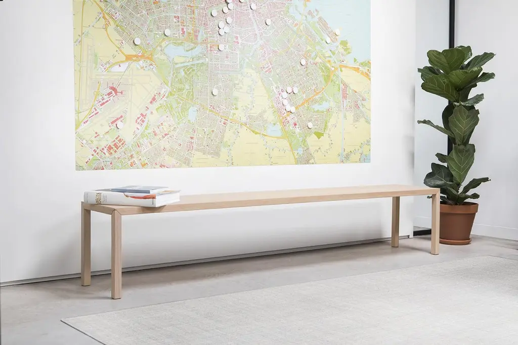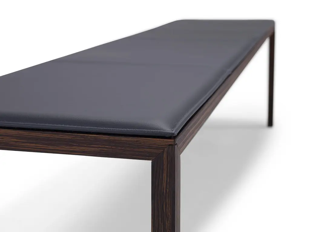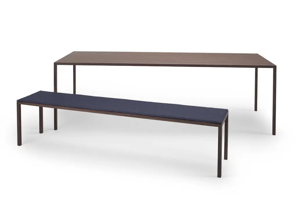 The corners of the Slim table have been further developed. The new construction allowed us to produce a Slim bench too: a bench to complement the Slim and the Slim+. It is also available with a matching cushion in fabric or leather.Price listed for 240 x 40 x 45cm veneer.