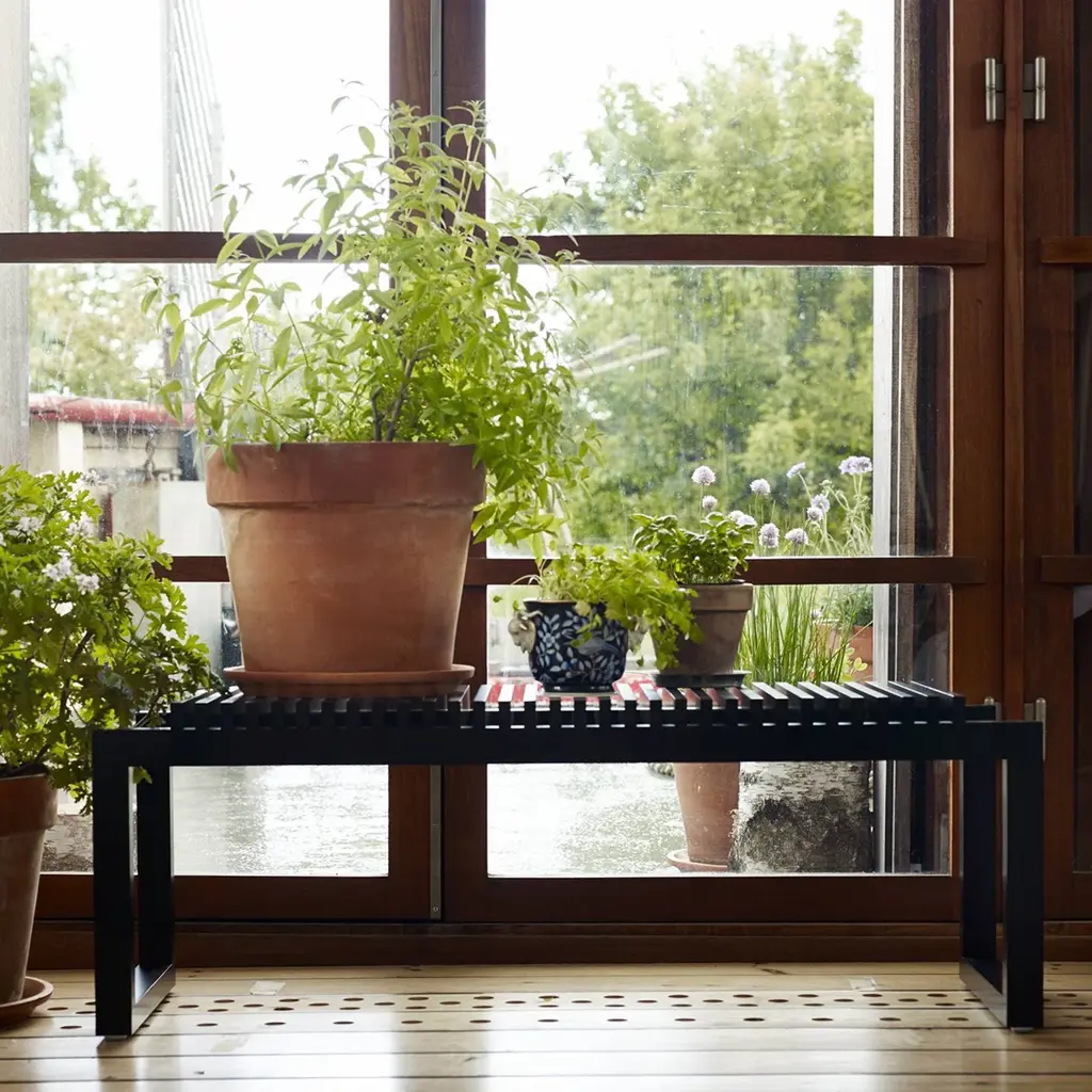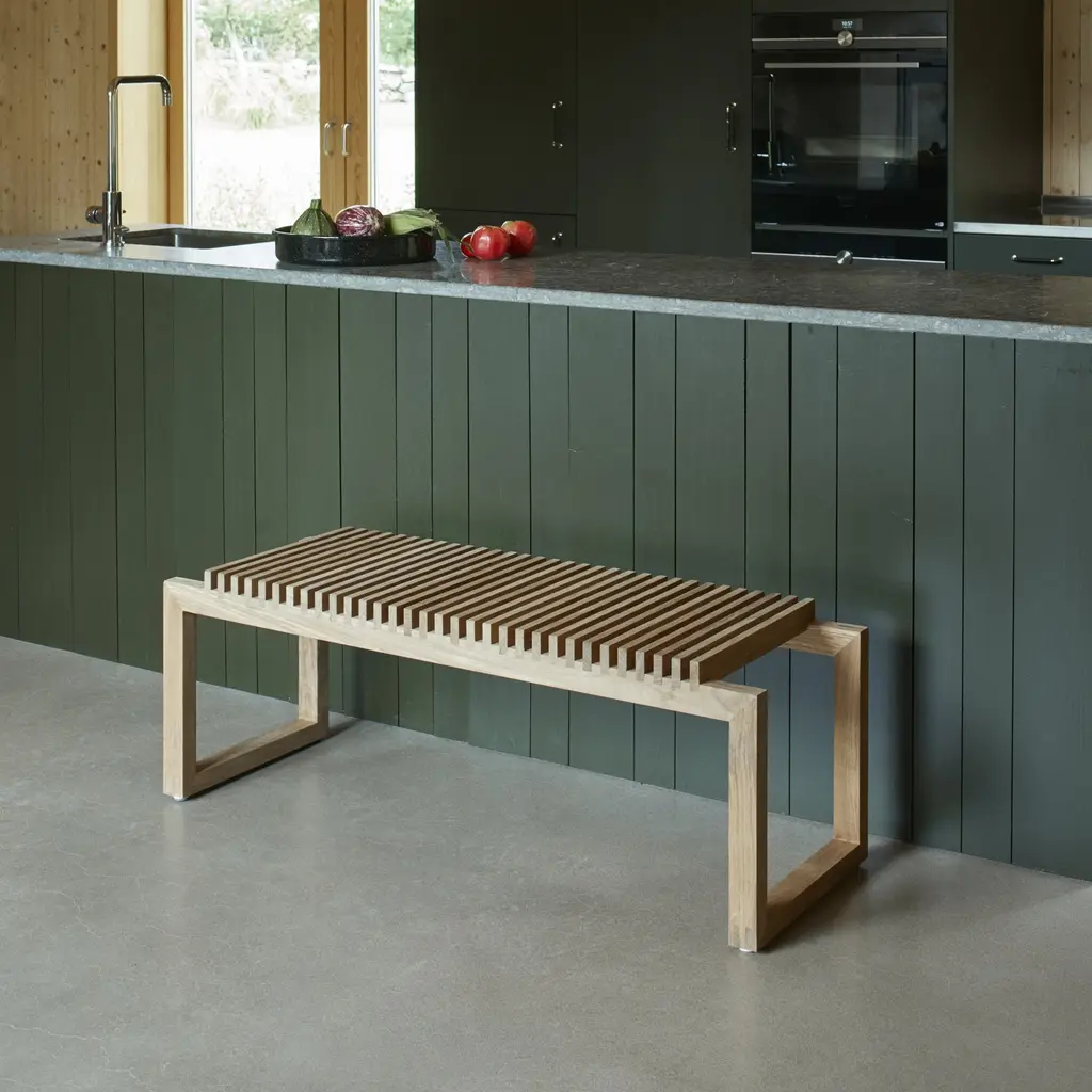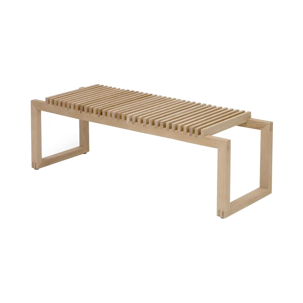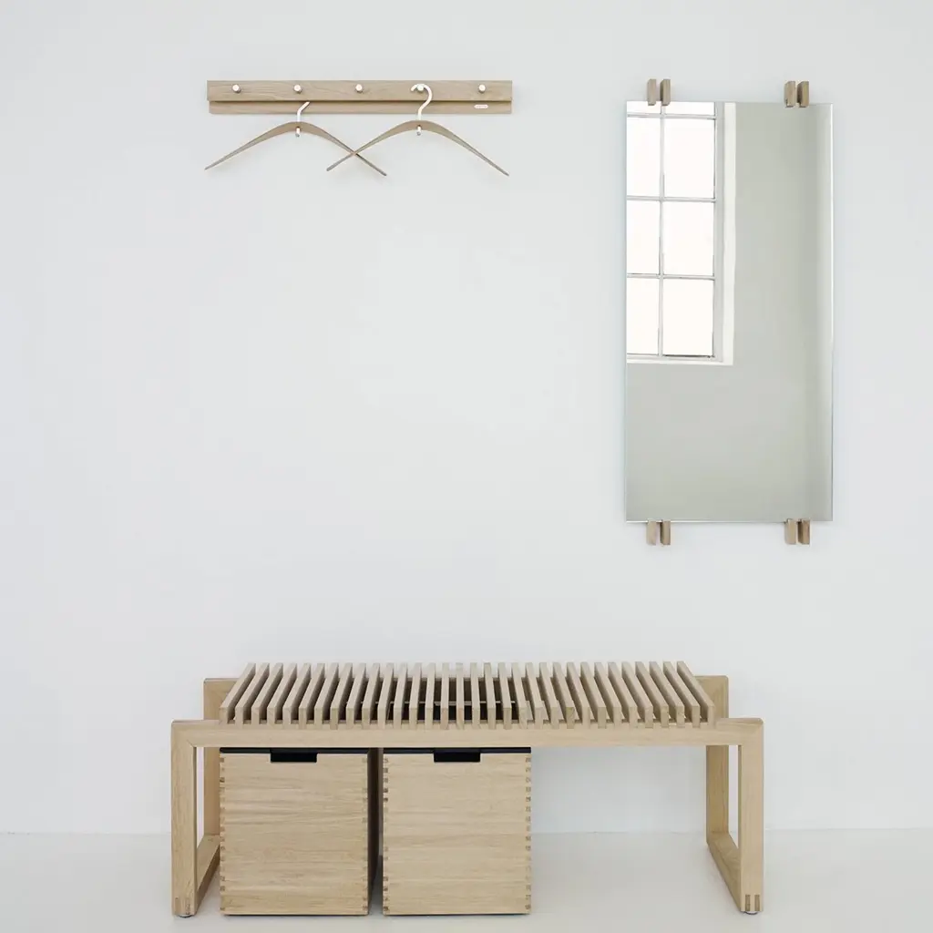 Skagerak’s iconic Cutter collection started with this Bauhaus-inspired bench, originally devised for an exhibition called “Walk the Plank.” Designed by Niels Hvass, it has his hallmark precision in the scale of the geometric frame and the finely spaced slatted seat. The bench is the base for all of the collection’s storage pieces or it functions beautifully on its own—indoors or even outside in the weather-resistant teak version.