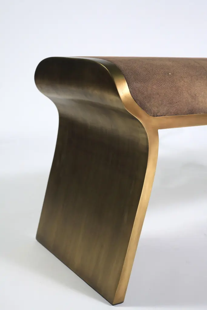 Dandy Day Bench In Mink Shagreen And Bronze-Patina Brass By Kifu Paris