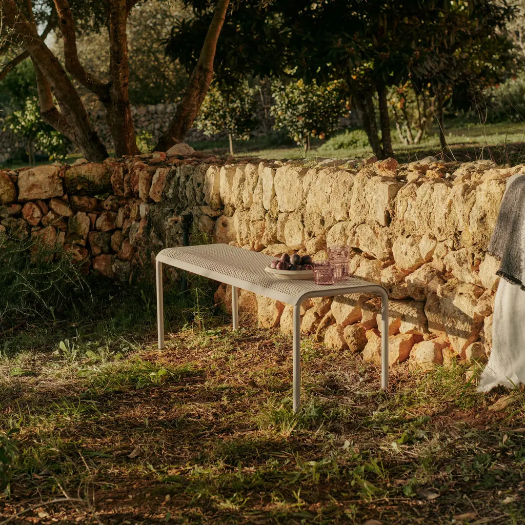 Experience the peaceful allure of nature with the Dapple Outdoor Bench from Ferm Living. Crafted from powder coated galvanized steel, this bench boasts durability and an elegant aesthetic. Its airy, lightweight design and unique perforated pattern make it a practical and stylish addition to any outdoor space. Highlights