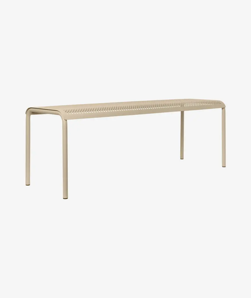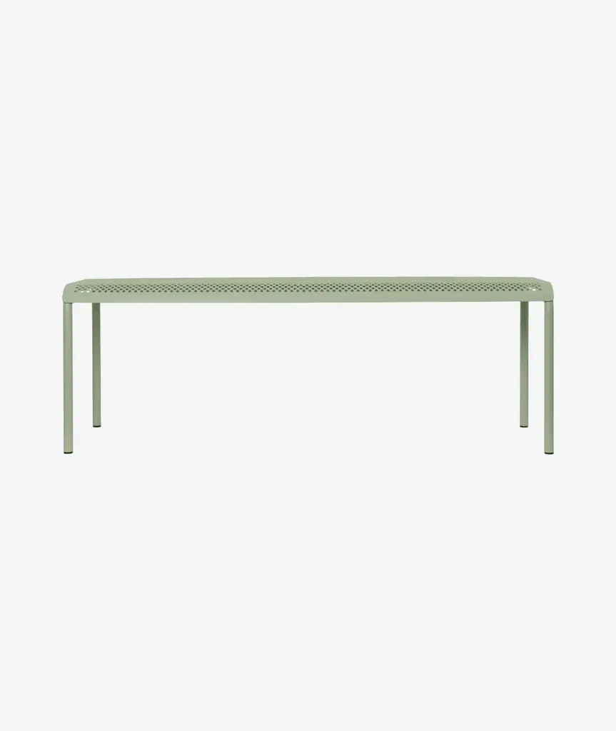 Inspired by the beauty of sunlight filtering through leaves, the Dapple Collection brings a sense of tranquillity to outdoor spaces. The Dapple Bench is crafted from powder coated galvanized steel that ensures durability and protection from the elements while maintaining an elegant aesthetic. With its airy, lightweight form and distinctive perforated pattern, the Dapple Bench is equal parts practical and stylish.