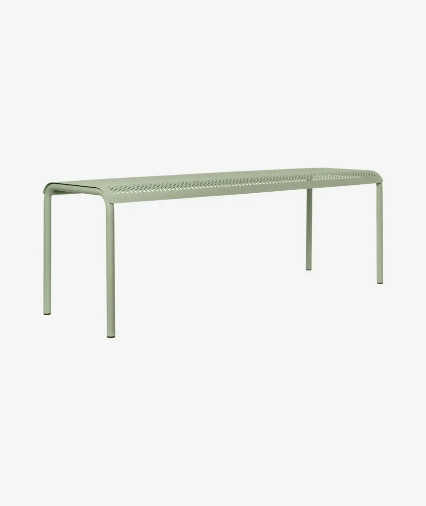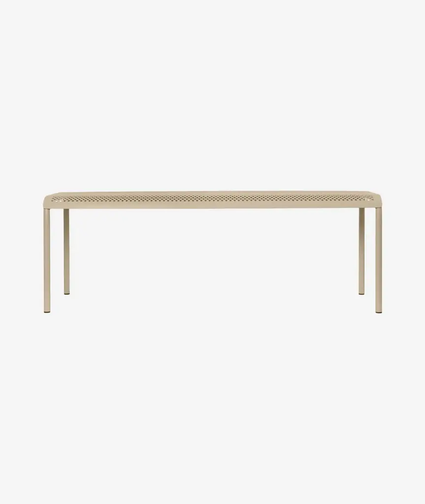 Inspired by the beauty of sunlight filtering through leaves, the Dapple Collection brings a sense of tranquillity to outdoor spaces. The Dapple Bench is crafted from powder coated galvanized steel that ensures durability and protection from the elements while maintaining an elegant aesthetic. With its airy, lightweight form and distinctive perforated pattern, the Dapple Bench is equal parts practical and stylish.