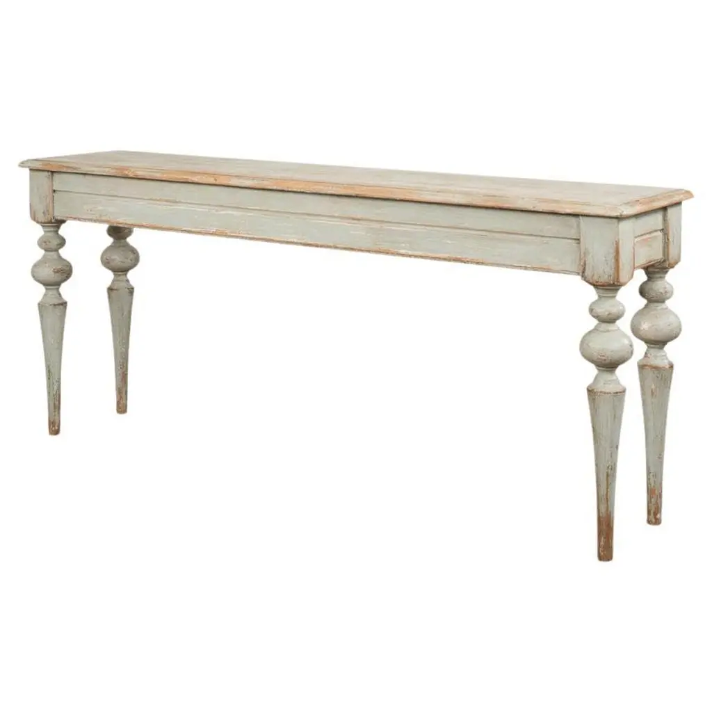 The Davis Teal Dining Bench is a narrow, traditional-style wooden bench with metal accents, ideal for use in a dining room. This bench requires assembly, features a beautiful teal blue color, and is made from MDF, rubberwood, and hardware.