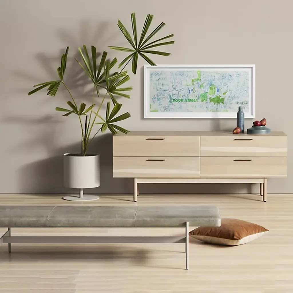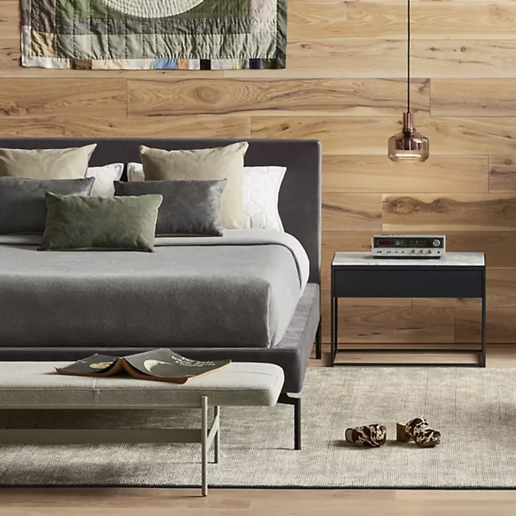 An elegant piece making the daily routine a sheer pleasure. Get ready or wind down with a seat on the Daybench from Blu Dot. It’s a clean, modern design for the humble home. The eyes are drawn to the piece first for its balanced aesthetic. The powder-coated steel base dashes with sleek lines to give the silhouette a graphic quality. Slotting inside the slender legs, the seat shoots to the sides, offering plenty of space for a small group. Sitting at a low profile, the seat offers a plump, cozy feel at either end. The Maharam upholstered fabric styles up the piece with a soft, texture feel.