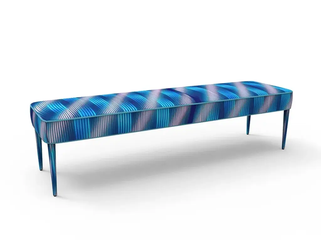 The price refers to the configurations shown in the photos:- Printed coton seat TF3B finish in Capsule Collection digital print.- Printed coton seat RX Nuance 2B Collection. Solid cotton pipping T100/43- Printed coton top Tecno Folk 2B Collection. Solid cotton perimeter band and feet in T100/28.DAZA DAZ03 is a bench with powder-coated metal structure and feet in solid wood. Seat padded in polyurethane foam and upholstered feet. Non-removable cover. Piping stitching in printed or solid color fabric. Non removable upholstery. Momenti's Home & Contract collection offers a wide range of furniture products and accessories, all customizable. Each product can be customized through the choice of various details such as different bases or handles to make it unique. It is possible to choose between 3 Collections which include 36 graphics designed specifically for the Home & Contract collection. The result is a unique product, a mix of art and design, enhanced by a selection of refined and hand-crafted materials.Our furniture is created with: - wooden particle panels created by the use of salvaged wooden material, thus avoiding the cutting of new trees. Low-formaldehyde glues have been used for this product. - composite alluminium alloy panel, with an interposed core of polyethylene, the simplest of the synthetic polymers and the most present in nature.The working process takes place in full respect of the current environmental regulations. Our compound is then applied to these supports, which is made of non-toxic, odor-free, water-repellent and easy to clean resins.