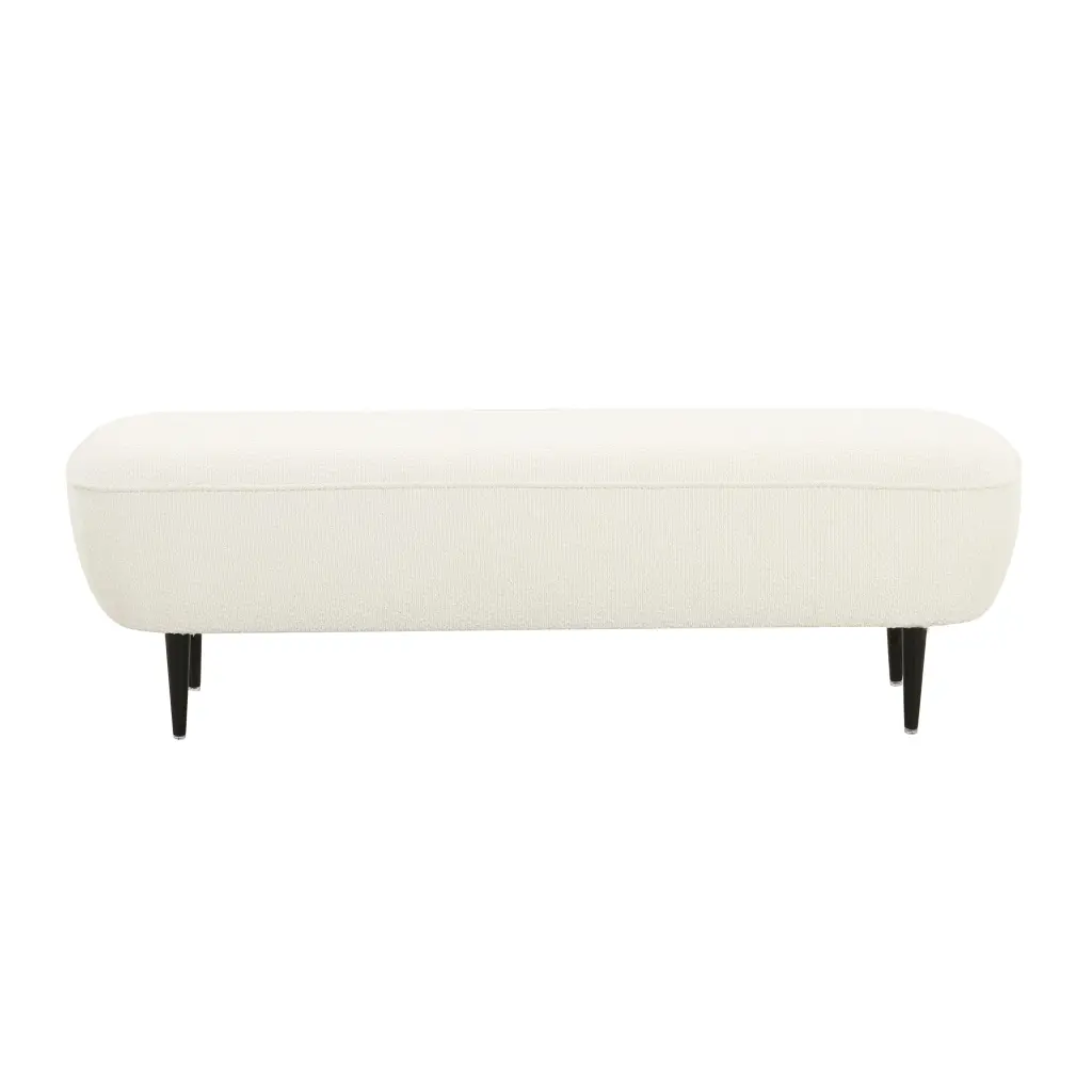 Perfect for entryways, living rooms, or bedrooms, the Denise Cream Boucle Bench offers versatile functionality! The cream boucle fabric is timeless and elevates your space. With a sturdy wood frame and black iron legs, this bench is made to last. The modern and sleek style allows this bench to be added to any style in your home.