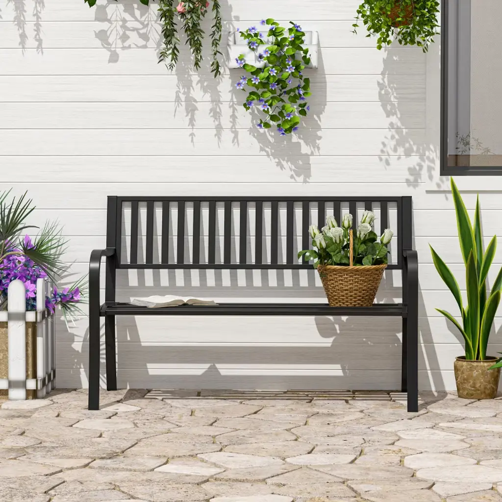 Slatted design seat and backreat withcurved armrests, this metal bench adds a stylish and chic look that matches any outdoor spaces.