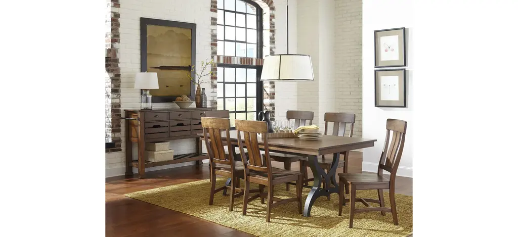 Industrial styling with cast metal accents and beautiful hardwood, the District Bench will stand out in your dining room. This bench is crafted of solid birch and features side stretchers for added strength.