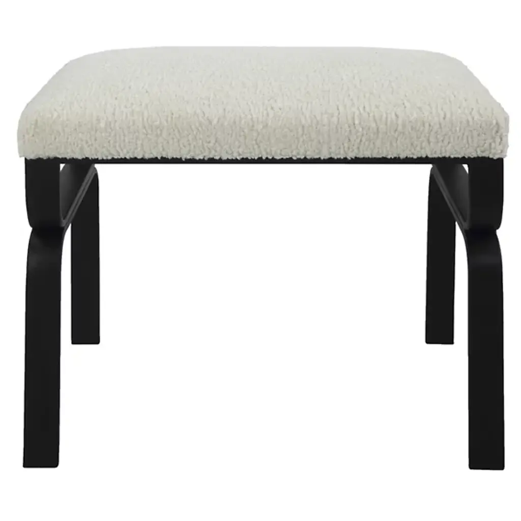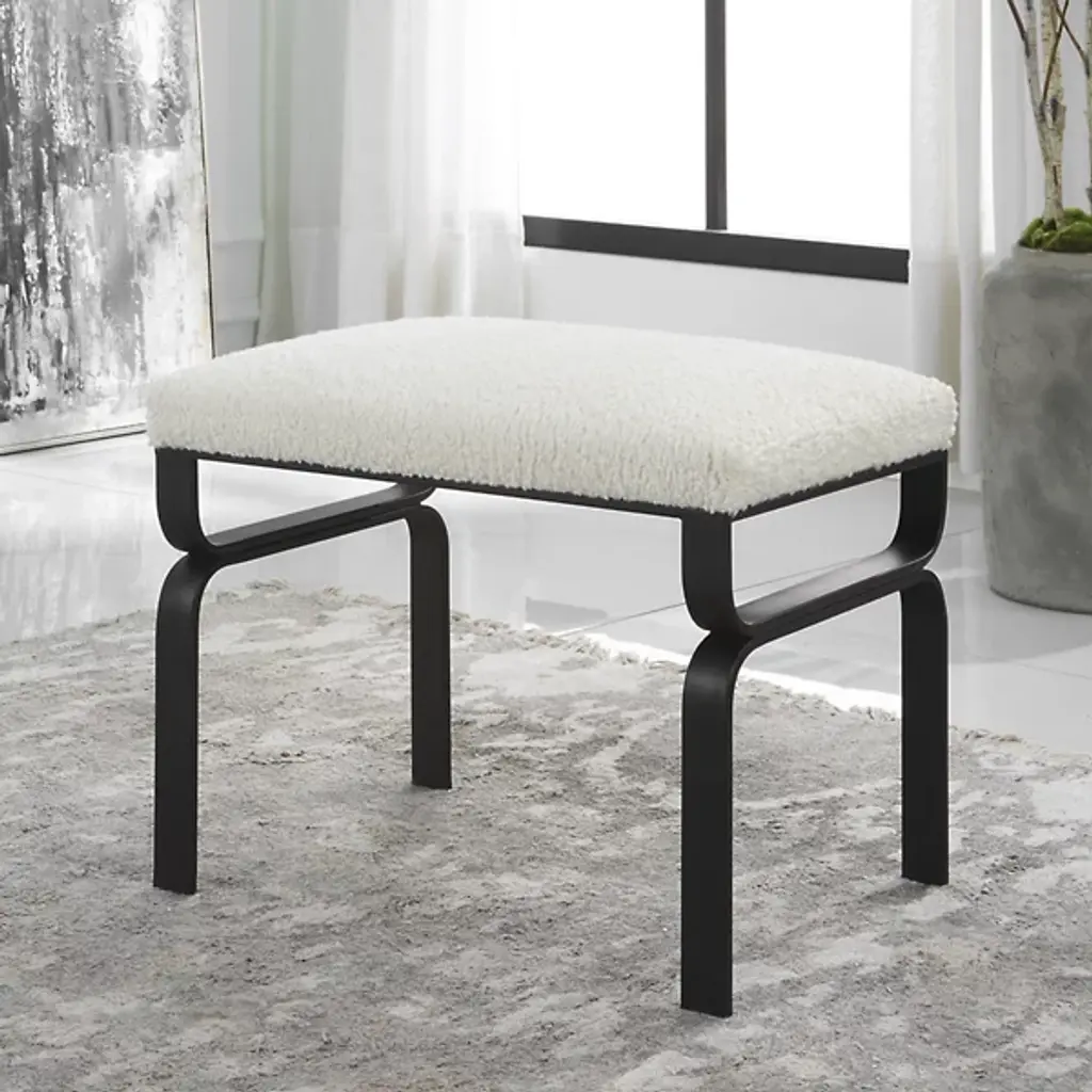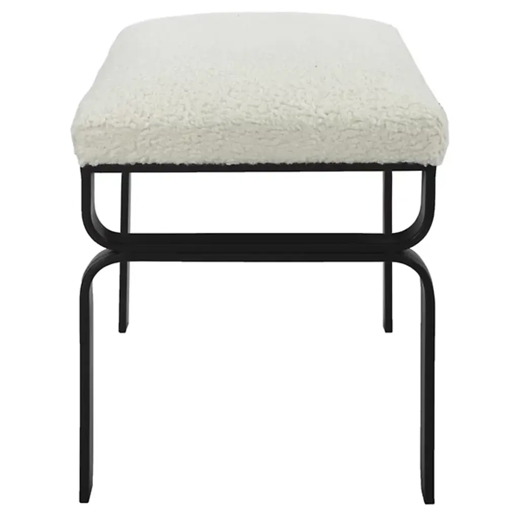 Featuring a streamlined multi-tonal design, the Diverge Small Bench from Uttermost is a stunning addition to your living space. Supported by a curved, durable iron base, it exudes a touch of contemporary elegance. The plush upholstered seat in white faux shearling offers luxurious comfort and style. Whether in your living room, bedroom, or entryway, Diverge nicely blends aesthetics and comfort. This bench’s framework forms beautiful silhouettes which draw your attention