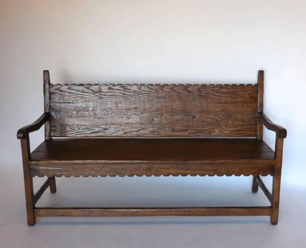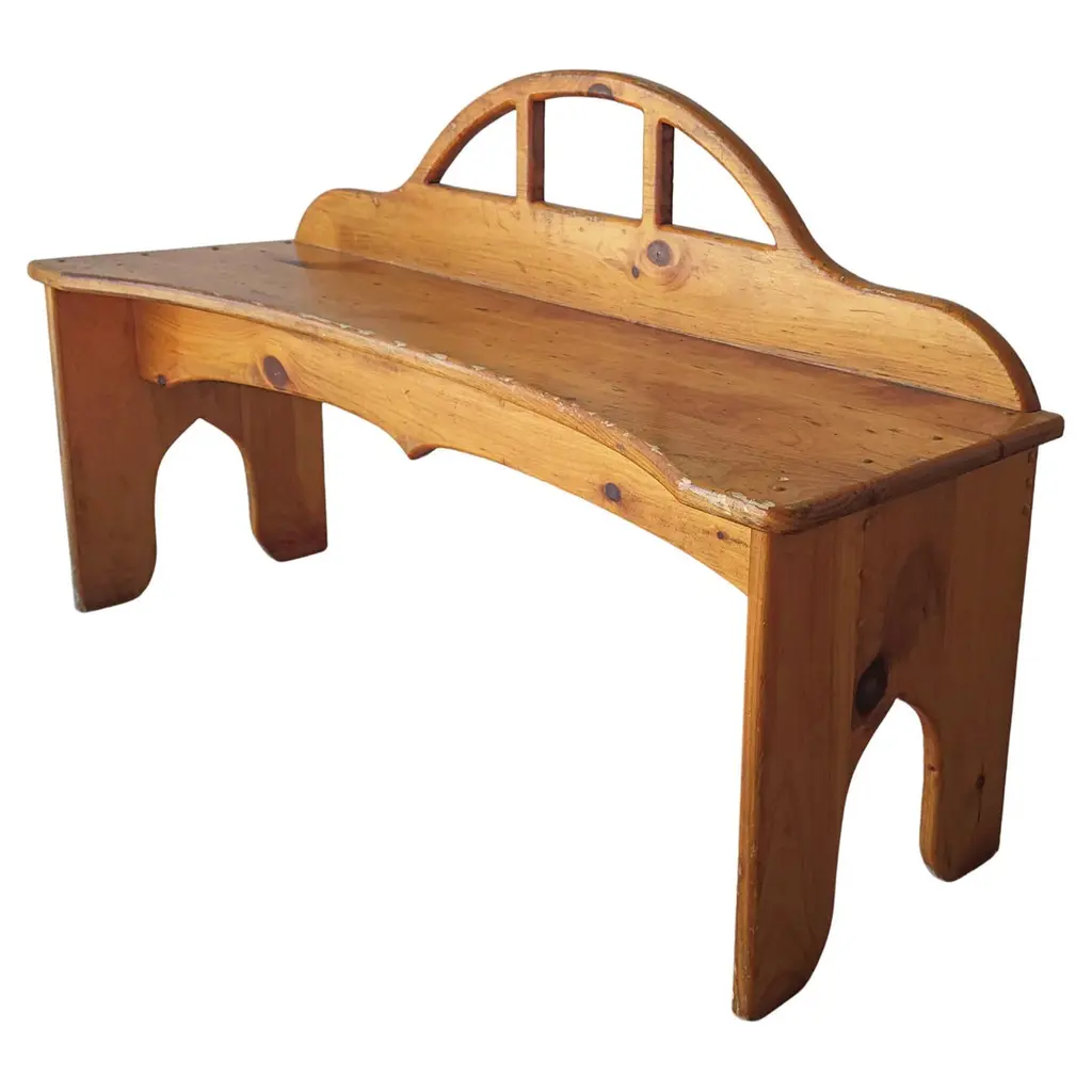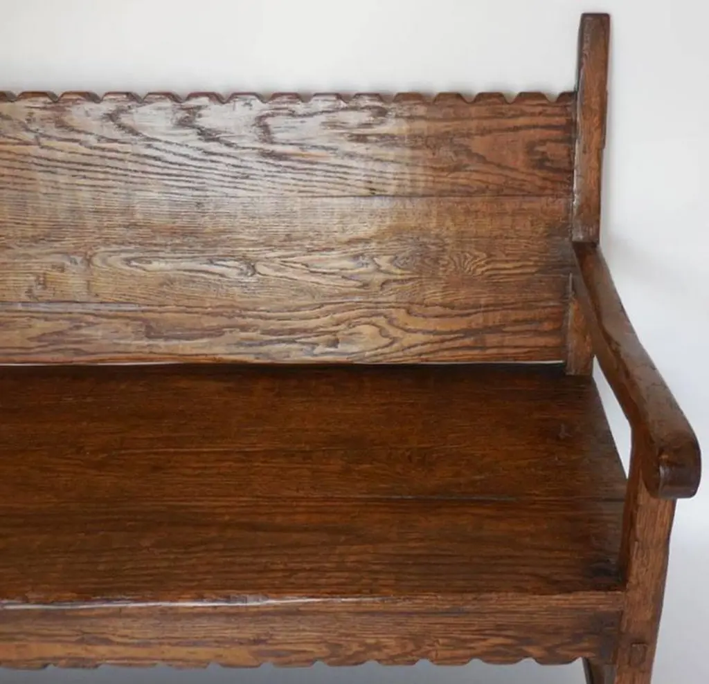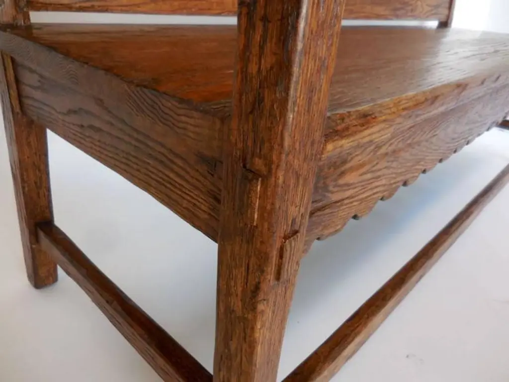 Dos Gallos Custom Oakwood Bench With Scalloped Back And Apron