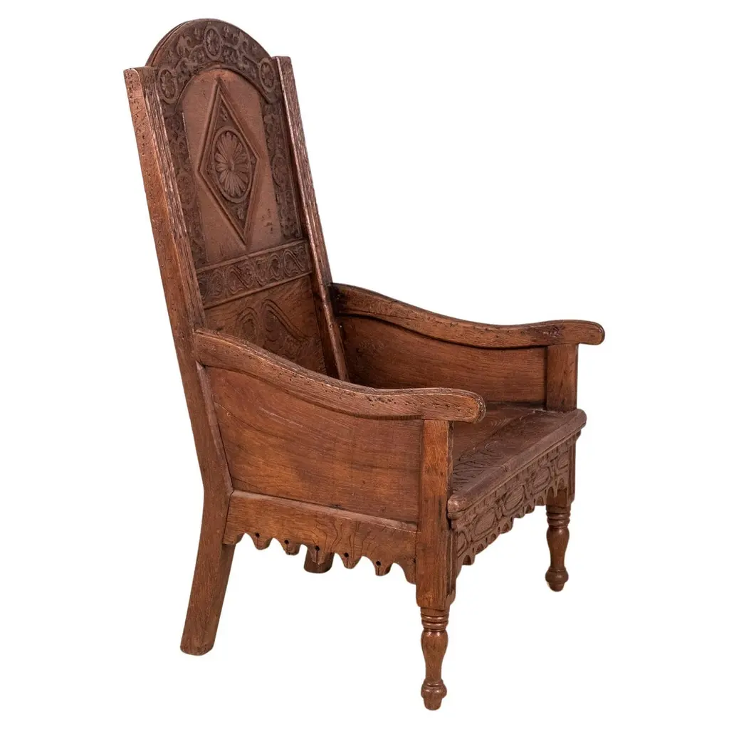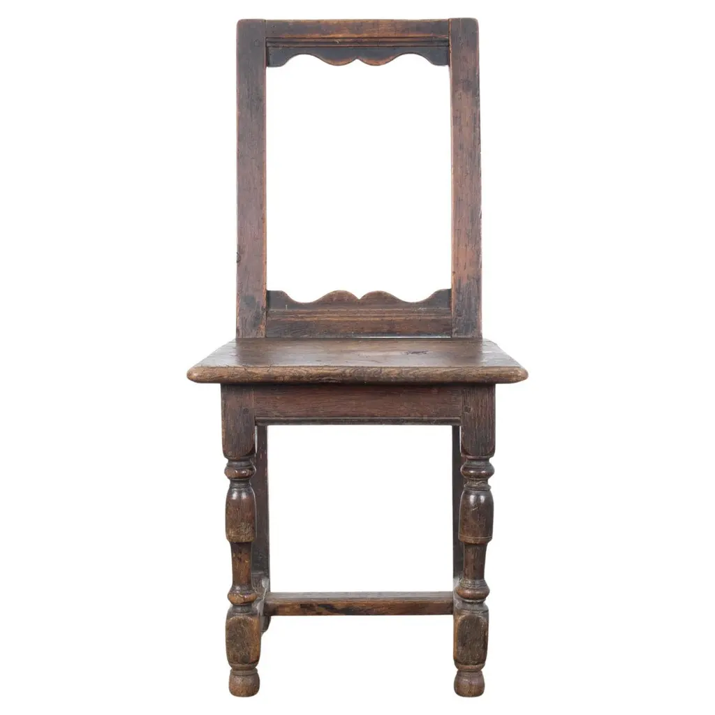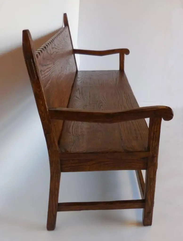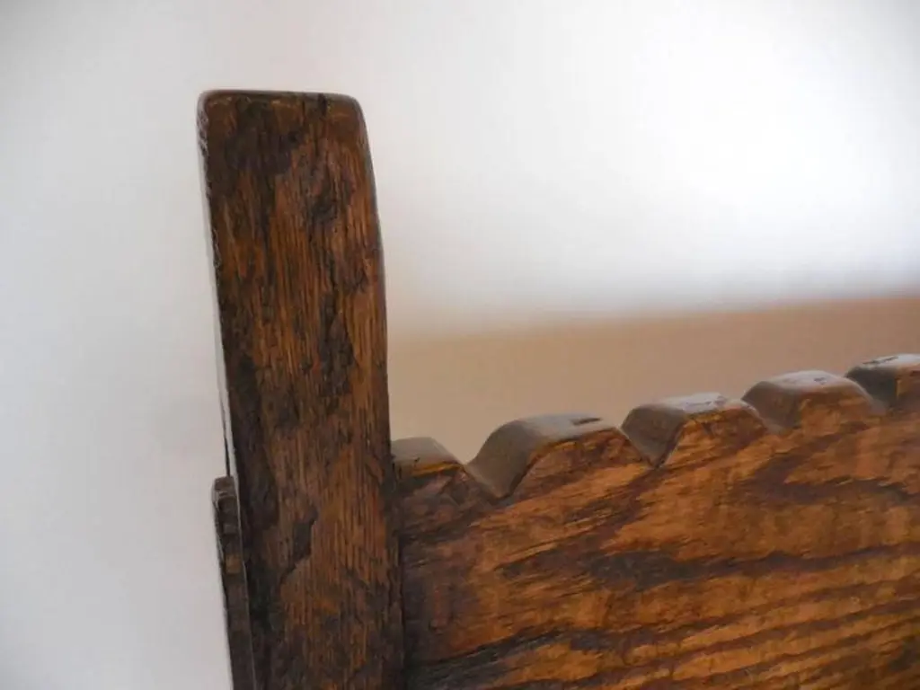 Dos Gallos Custom Oakwood Bench With Scalloped Back And Apron