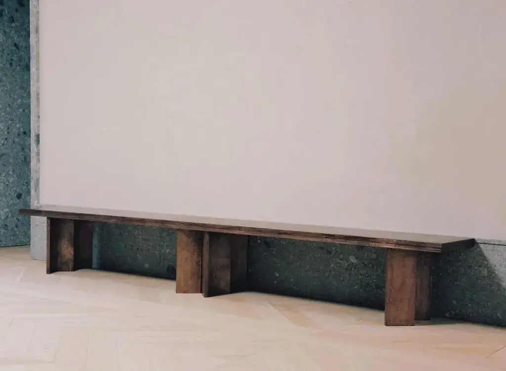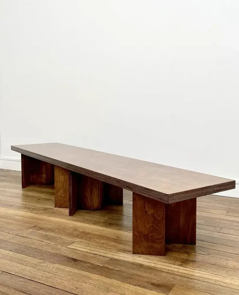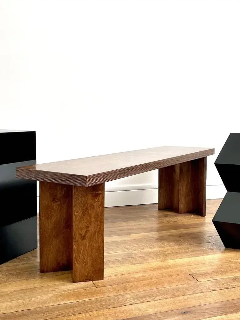 Double bench by Goons Dimensions: W 220 x D 45 x H 43 cm. Materials: Wood. Goons is located in Paris, France. All of their designs are made out of wood.