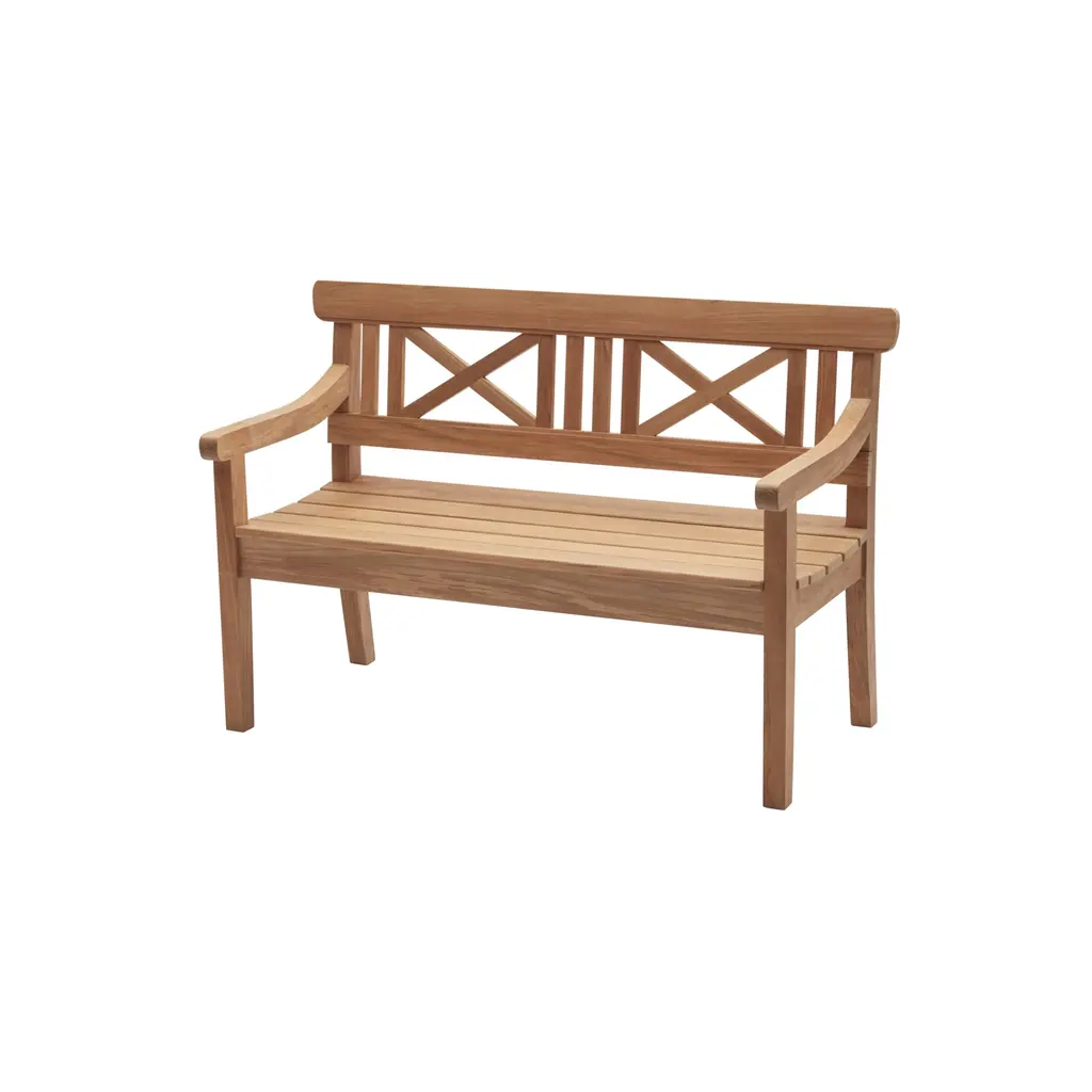 Inspired by the Danish poet and painter Holger Drachmann, this garden bench is a contemporary classic. Long recognizable, Skagerak first launched Bernt Santesson’s timeless design with its graceful bearing in 1982. Durable in all kinds of weather, the naturally untreated, sustainably sourced teak bench weathers beautifully, taking on a silver-grey patina.