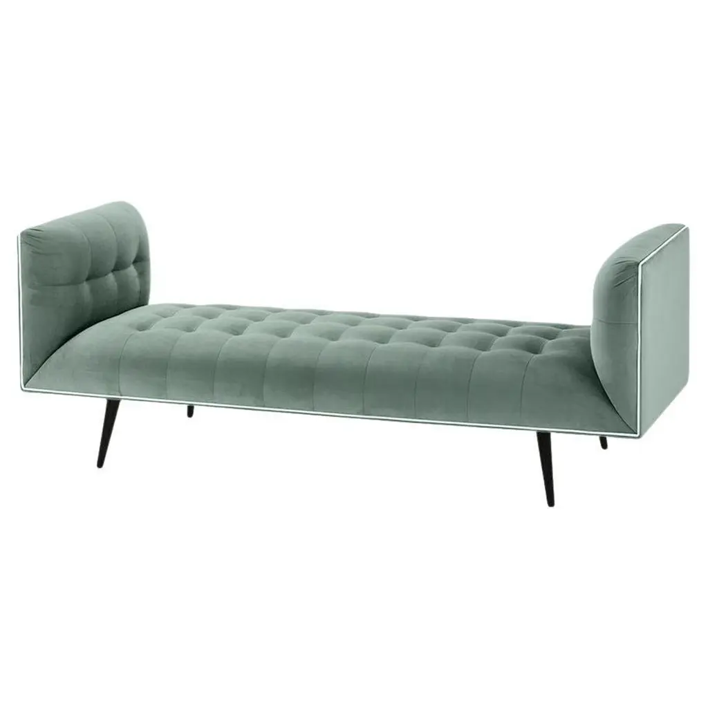 The Dust Bench is constructed in solid wood, with an elevated tufted elegant look and a comfortable seating. Handmade with a solid wood base and wood legs. Polished brass metal feet detail is available as an option.The Dust Bench is available in a number of different materials, finishes and combinations.Wood finish and upholstery can be fully customizedCOM Available : Upholstery 5 yards, piping 0.7 yardsMaterialUpholstery : Velvet Fabric, Boucle Fabric, COMWood legs : Solid Wood baseMetal foot detail (on demand)DimensionsAvailable in 2 sizesSmall: 71” W x 28”D x 28” H Seat height 16”Large: 79” W x 28”D x 28” H Seat height 16”Pictured inParis Mousse, Smooth Shell Pipping, Gold Lacquered Wood Feet