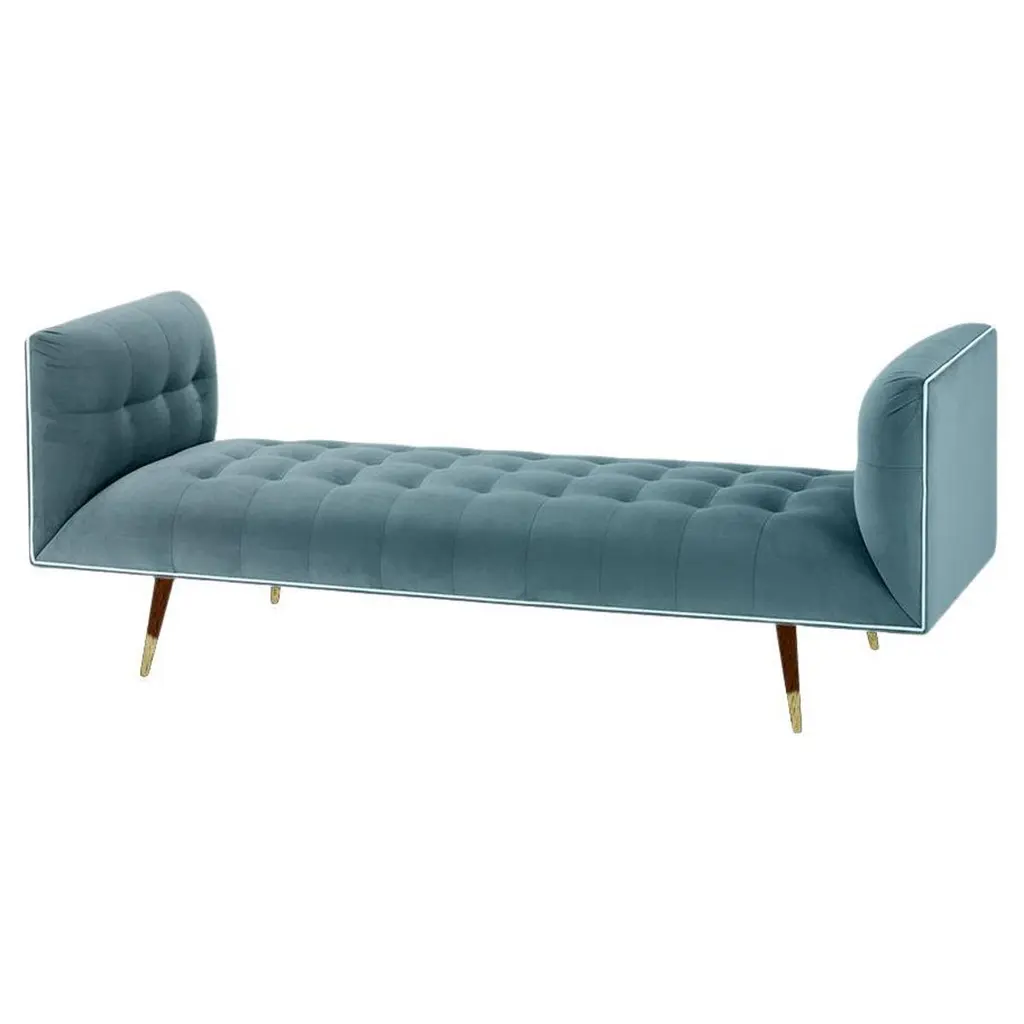 The Dust bench is constructed in solid wood, with an elevated tufted elegant look and a comfortable seating. Handmade with a solid wood base and wood legs. Polished brass metal feet detail is available as an option.The Dust bench is available in a number of different materials, finishes and combinations.Wood finish and upholstery can be fully customized.COM available : upholstery 5 yards, piping 0.7 yards.Material:upholstery : velvet fabric, boucle fabric, COM.wood legs : solid wood base.Metal foot detail (on demand).Dimensions:available in 2 sizes.small: 71” W x 28” D x 28” H seat height 16”.large: 79” W x 28 ”D x 28” H seat height 16”.Pictured in.Paris mousse, smooth shell pipping, gold lacquered wood feet.