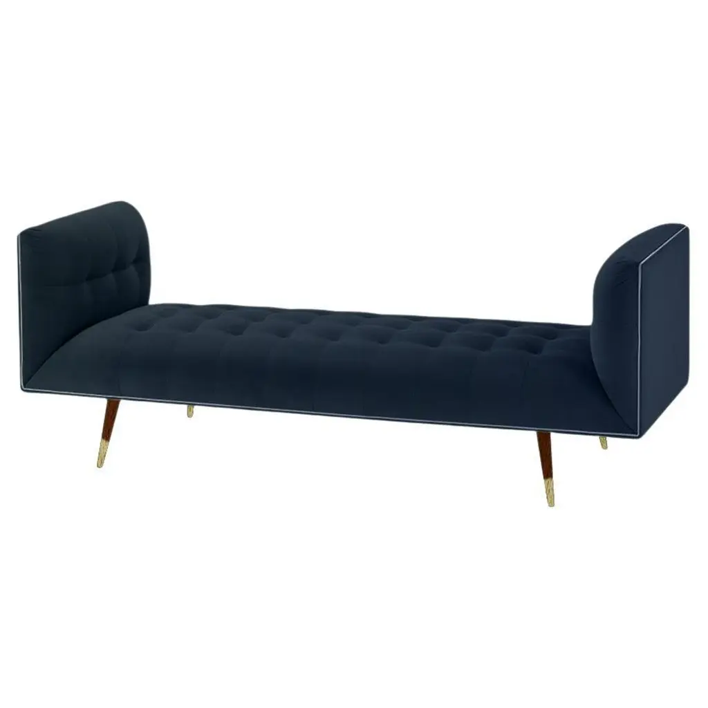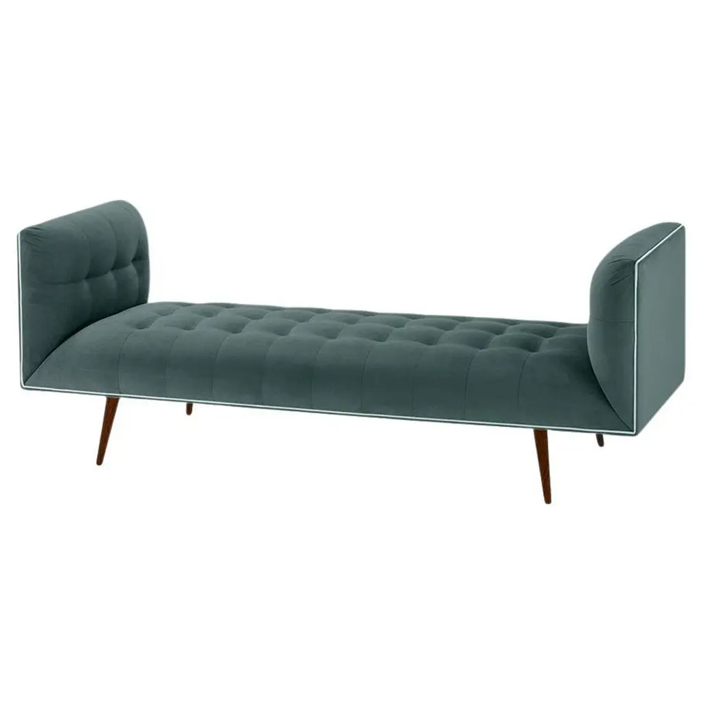 The Dust bench is constructed in solid wood, with an elevated tufted elegant look and a comfortable seating. Handmade with a solid wood base and wood legs. Polished brass metal feet detail is available as an option.The Dust bench is available in a number of different materials, finishes and combinations.Wood finish and upholstery can be fully customizedCOM Available : Upholstery 5 yards, piping 0.7 yardsMaterialUpholstery : Velvet Fabric, Boucle Fabric, COMWood legs : Solid Wood baseMetal foot detail (on demand)DimensionsAvailable in 2 sizesSmall: 71” W x 28”D x 28” H Seat height 16”Large: 79” W x 28”D x 28” H Seat height 16”Pictured inParis Mousse, smooth shell pipping, gold lacquered wood feet.
