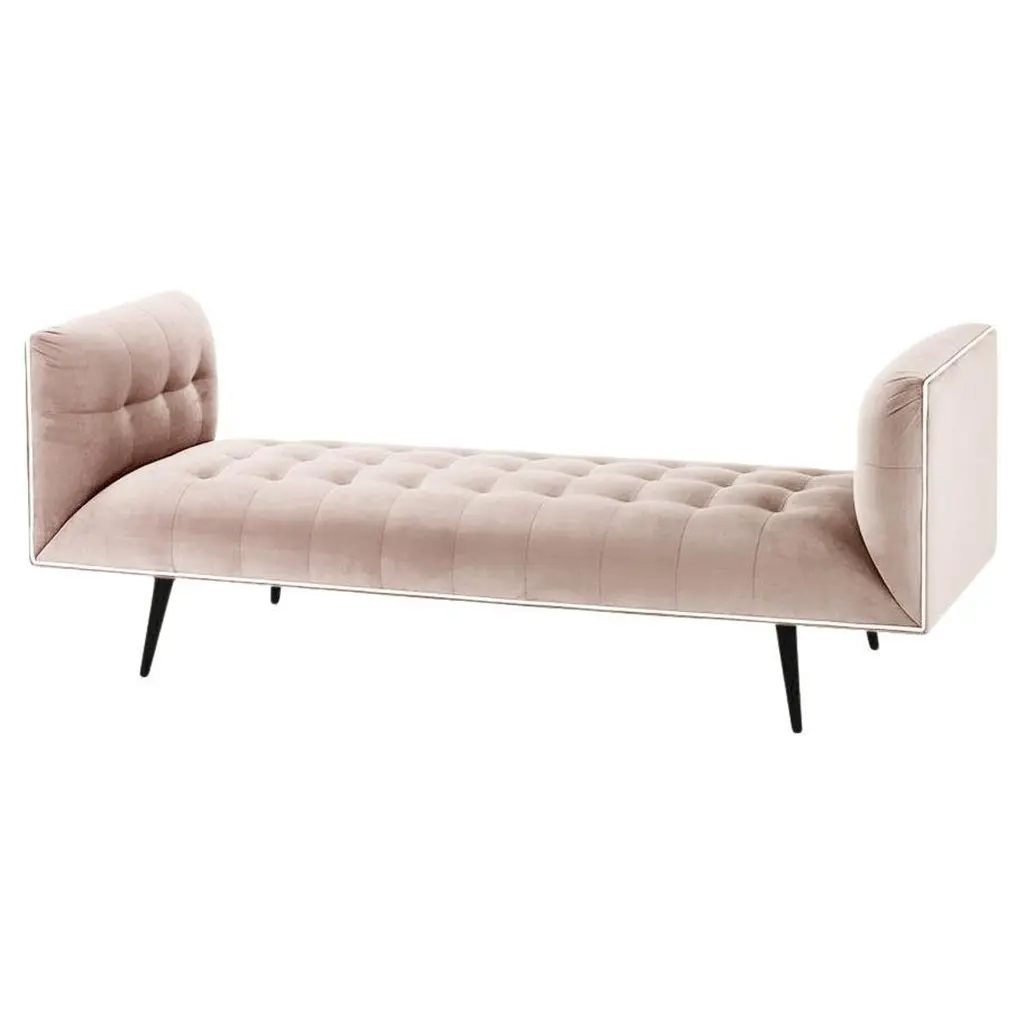 The Dust bench is constructed in solid wood, with an elevated tufted elegant look and a comfortable seating. Handmade with a solid wood base and wood legs. Polished brass metal feet detail is available as an option.The Dust bench is available in a number of different materials, finishes and combinations.Wood finish and upholstery can be fully customized.COM available : upholstery 5 yards, piping 0.7 yards.MaterialUpholstery : Velvet Fabric, Boucle Fabric, COM.Wood legs : solid wood base.Metal foot detail (on demand).Dimensions:Available in 2 sizesSmall: 71” width x 28” depth x 28” height, seat height 16”.Large: 79” width x 28” depth x 28” height, seat height 16”.Pictured inParis mousse, smooth shell pipping, gold lacquered wood feet.