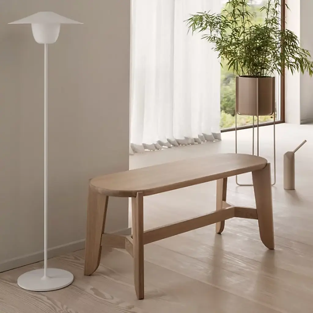 Take a seat or showcase tone-setting objects with the clean, versatile ELI Oak Bench from Blomus. This bench presents an aura of calm that’s heightened by its solid oak construction. The solid oak makes the piece an enduring one, both physically and visually. Wood grain marks colored in warm hues add a delicate texture to the piece. Tight curves define the bold-silhouetting legs of the bench. A thick rounded surface provides a smooth surface for seating and displaying.