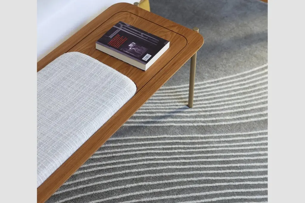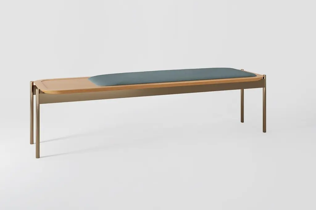 The "Elsa" bench pays homage to the Italian "Elsa Peretti", acclaimed jewelry designer and model who for 50 years has inspired countless women through her design, leaving an unforgettable mark on the world of jewelry with her elegant and poetic line.The "Elsa" Bench is made with an MDF top covered in natural wood, a steel base with anticorrosive paint in various shade options and upholstery covered with exclusive fabrics.
